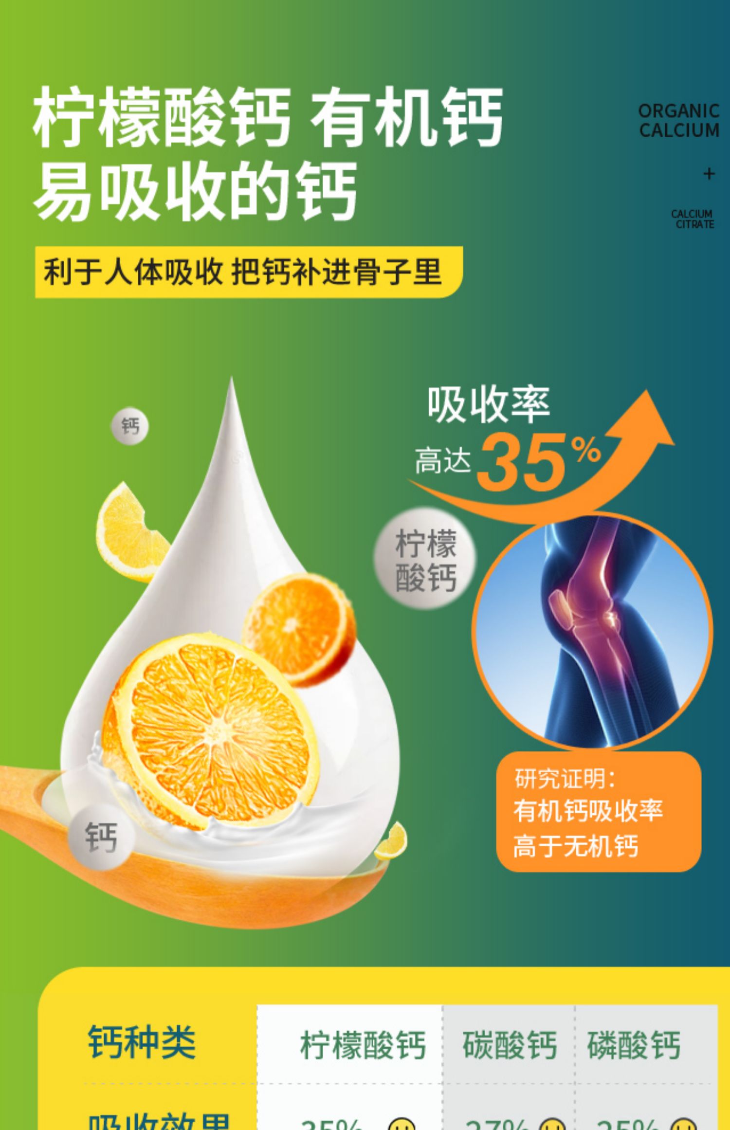 超值1整瓶装,橘子口味,优质有机钙,吸收更好含量更高,3岁以上人群均适用,轻松补充每日所需,促进骨骼发育,助力骨骼成长,增加骨密度,维持骨骼坚固和健康,是需补钙人群必备之选!