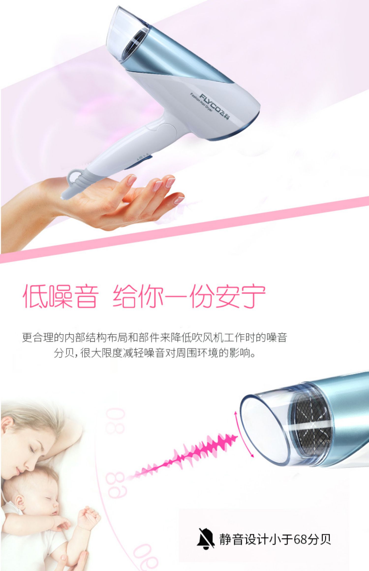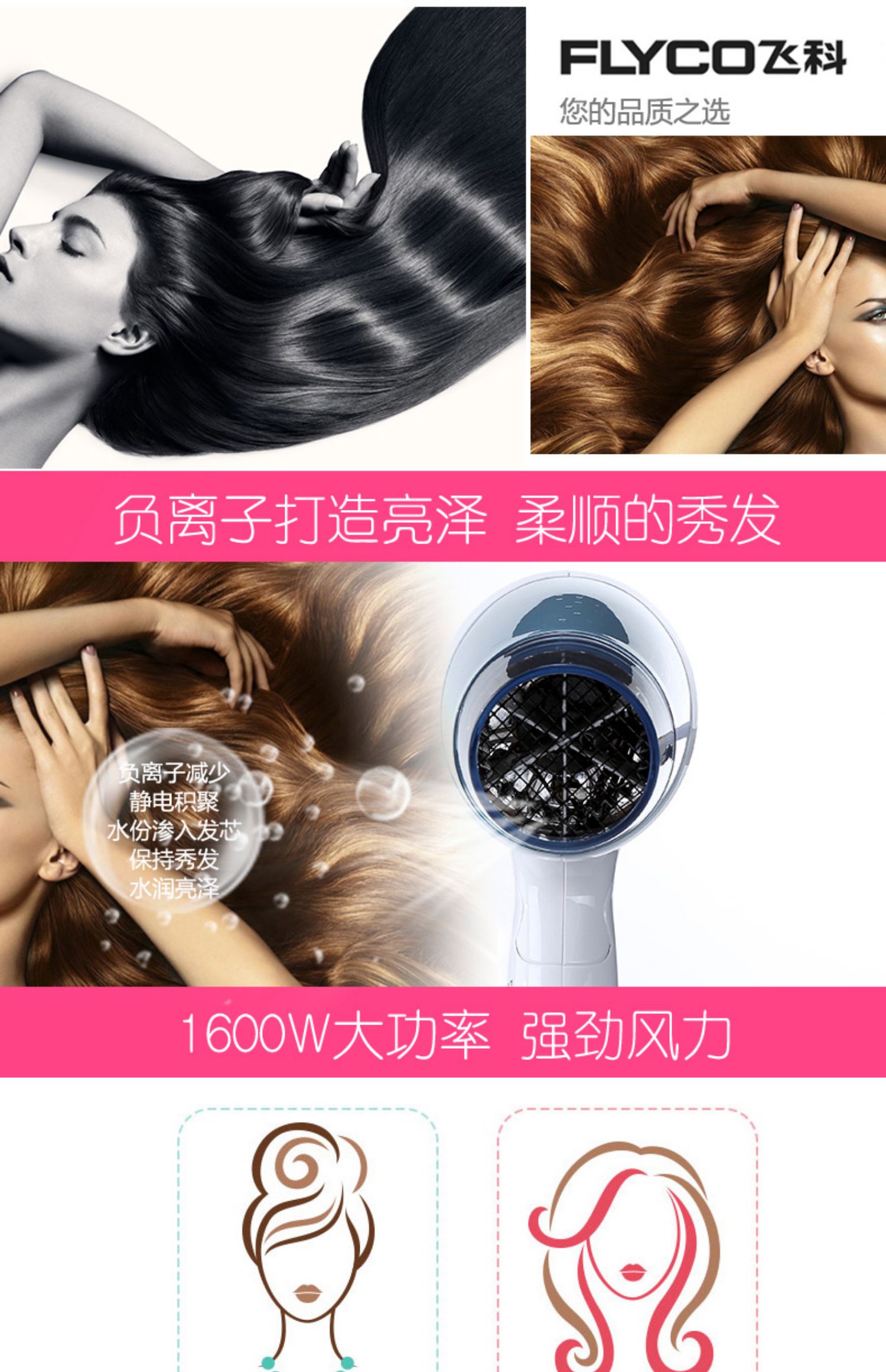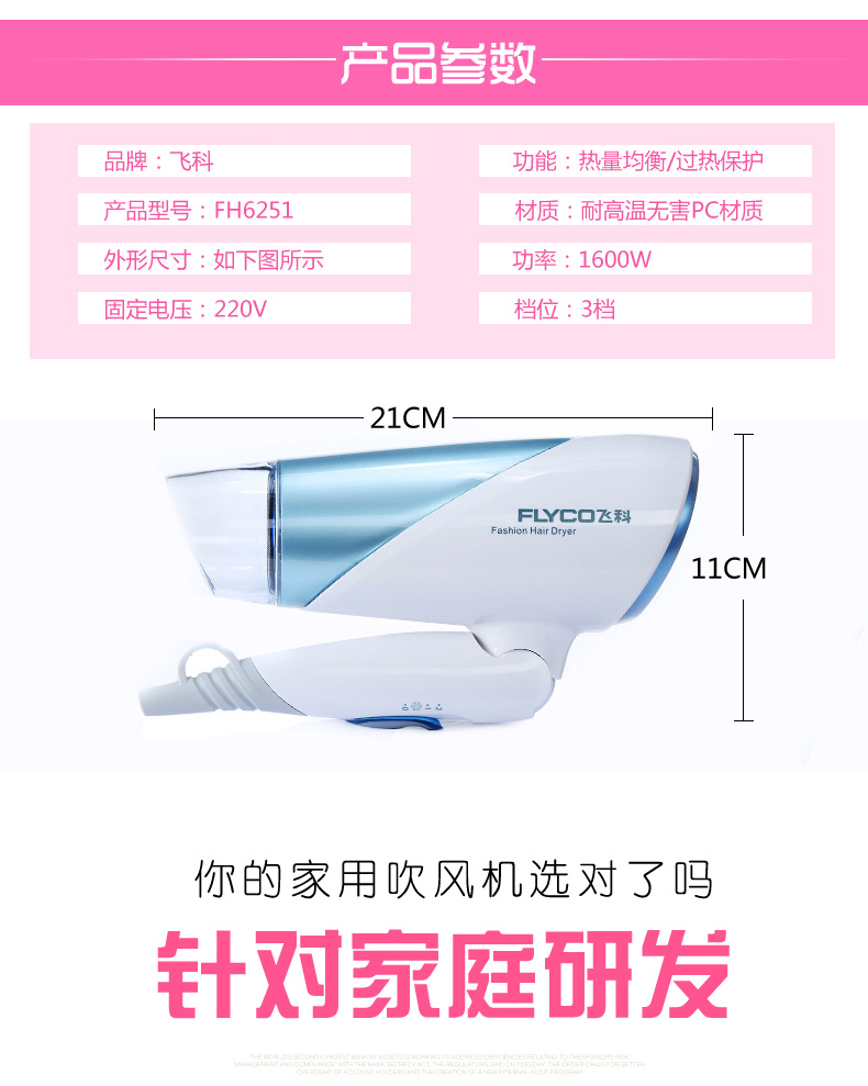 飞科品牌值得信赖。3档调节,负离子护发,1600W大功率,健康柔风护发,防辐射隔热层,喜欢的快来抢购吧!
