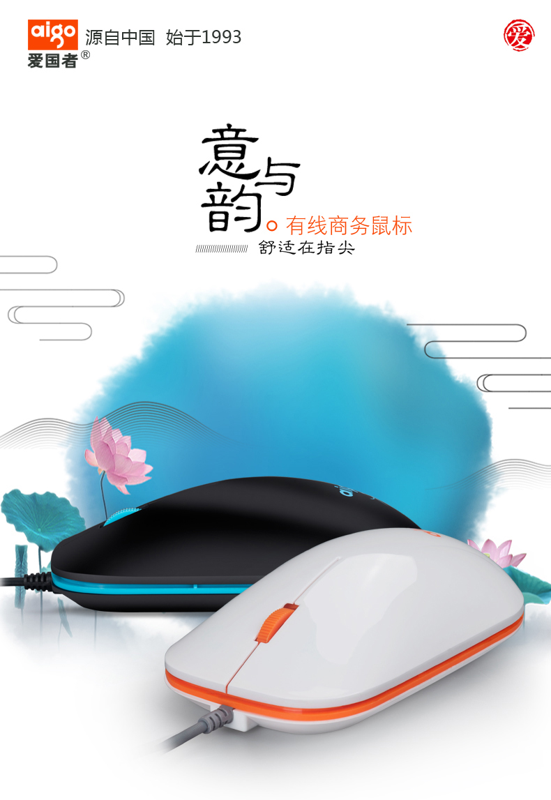 爱国者品牌,值得信赖!中国风有线鼠标,古典外形、时尚美观、1.8M线长、人体工学、舒适手感、即插即用、高光工艺、小巧便携、1年质保!