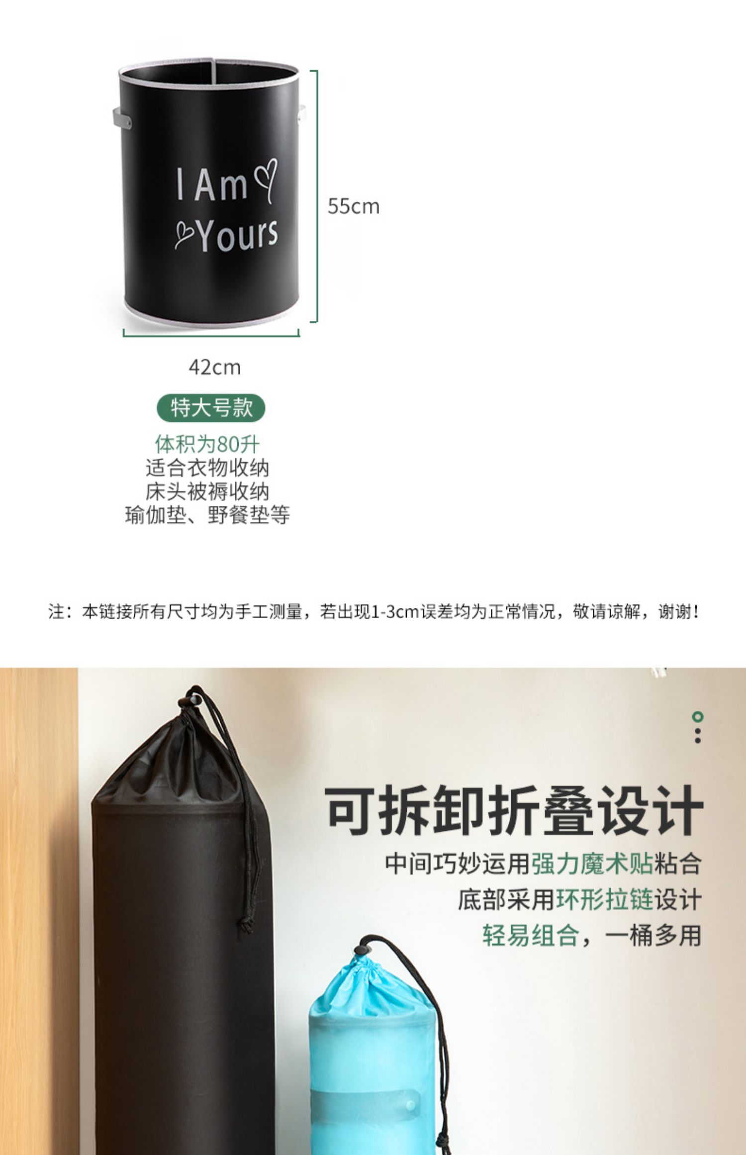 【品质优选】多功能可拆卸折叠收纳桶,,即可当洗衣机旁的脏衣篓,又可当家居衣物收纳箱,儿童玩具收纳桶,车载垃圾桶!多种用途总有一种适合你,还在等什么,速度盘它!