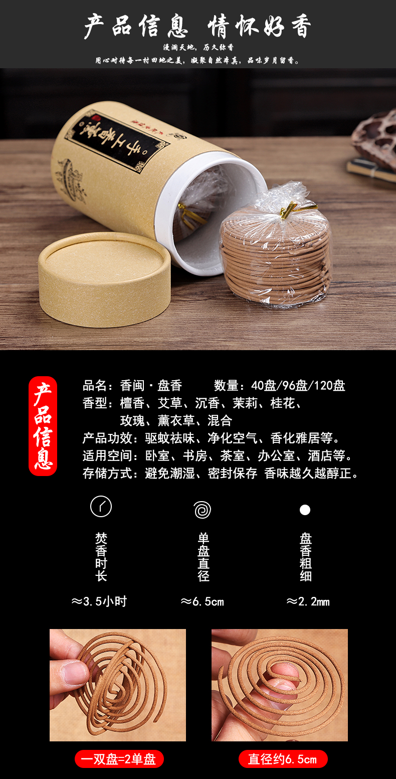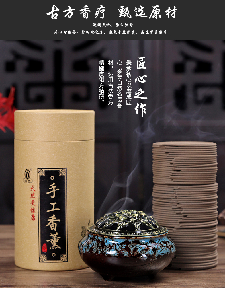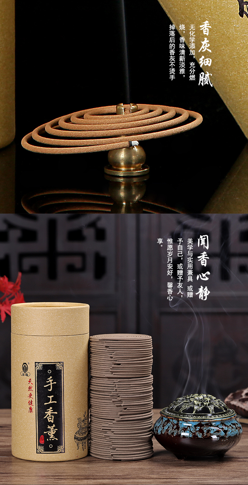檀香驱蚊香艾草盘香安神,家用熏香厕所除臭卫生间净化空气持久香薰,艾草驱蚊,厕所除臭,安寝好眠,香炉颜色随,(写新疆西藏不包邮)