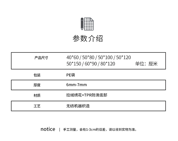 【40*60cm】绣花地垫超值两块装,多种颜色可选,加厚静音,防滑升级,任意裁剪不脱落,吸尘洗水,强力吸附不残留,放厨房,卧室,浴室门口都可以。居家必备!【赠送运费险】