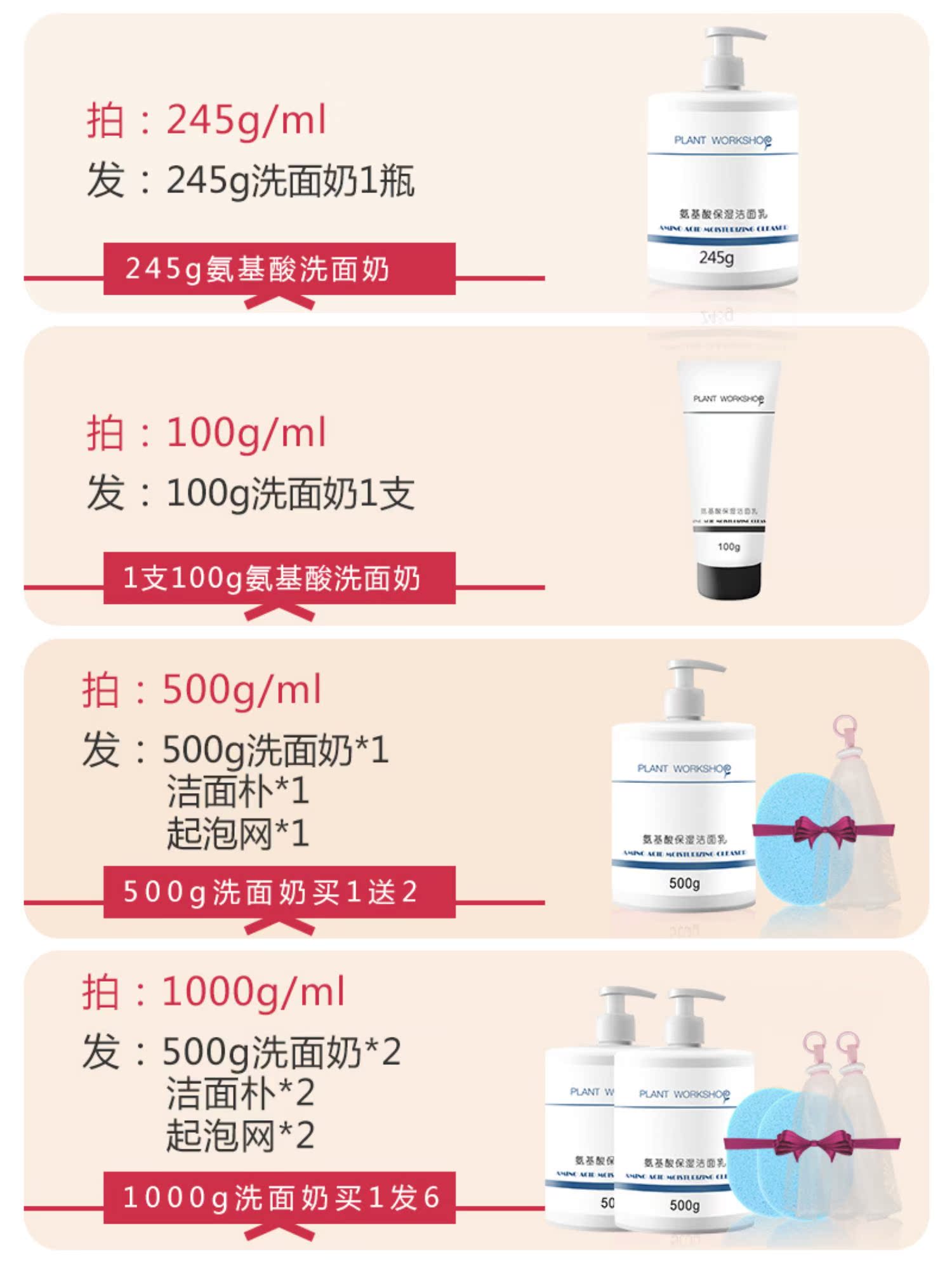 【拍500g买1送2】明星温碧霞&;;楚菲楚然推荐,皮肤好不好,选对洗面奶至关重要,富含氨基酸、烟酰胺等配方,温和洁面,清爽不刺激,敏感肌也适用!