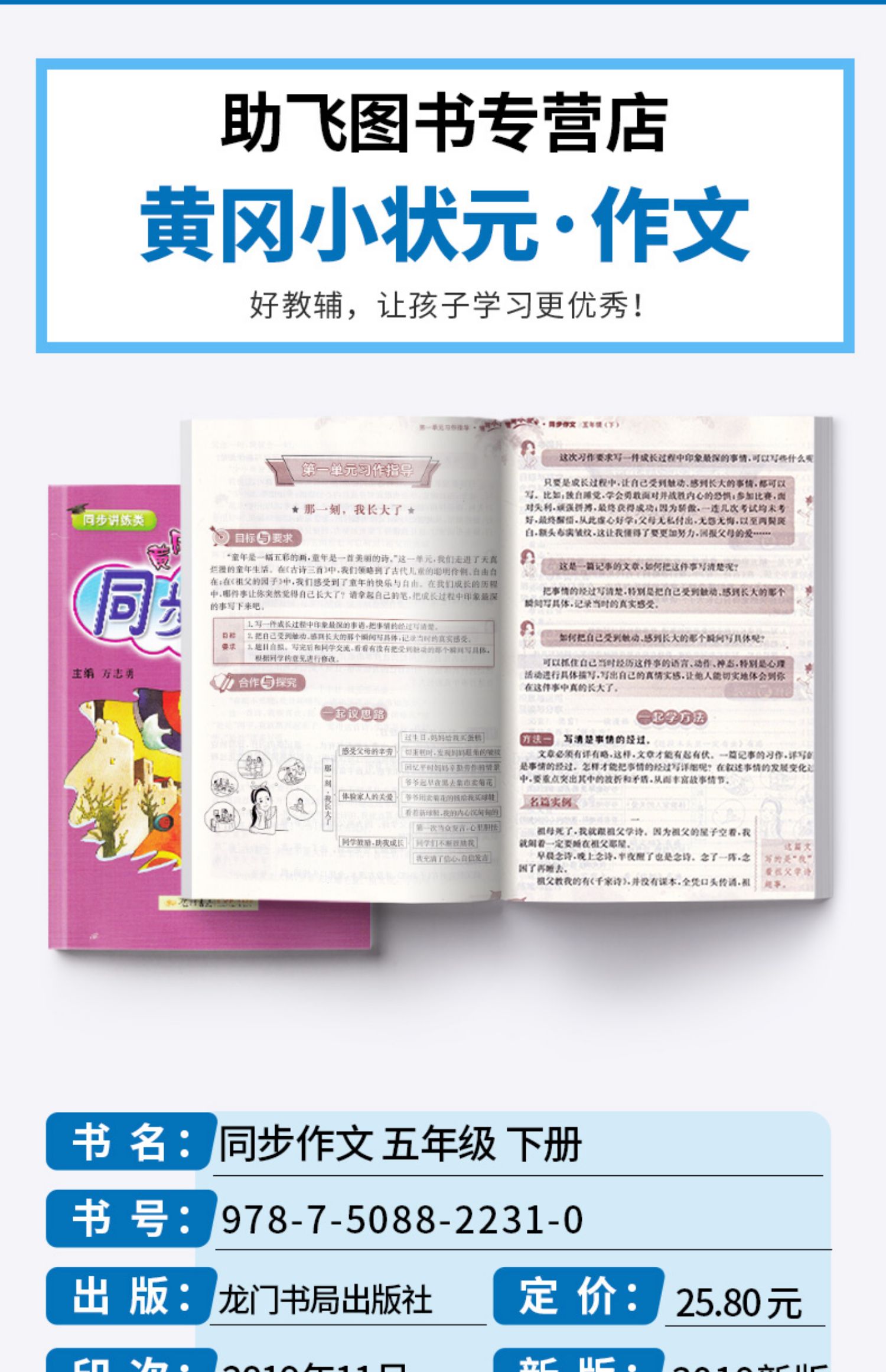 【助飞书店】【买一送一】黄冈小状元同步作文五年级下册部编版人教版,小学生语文5年级下册满分作文素材大全,创新优秀作文写作龙门书局精选资料书,提高孩子写作能力~必备!!