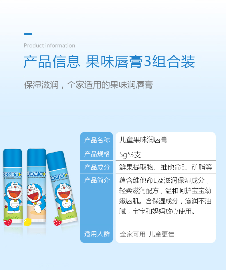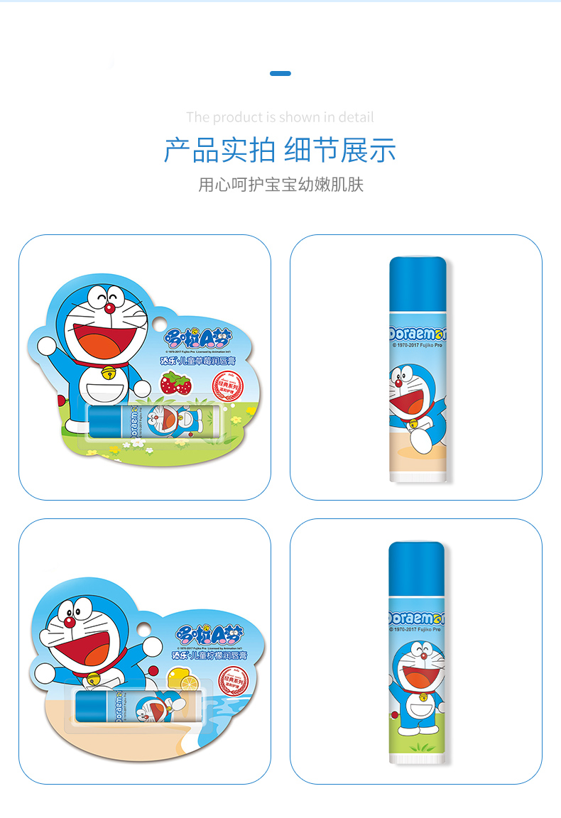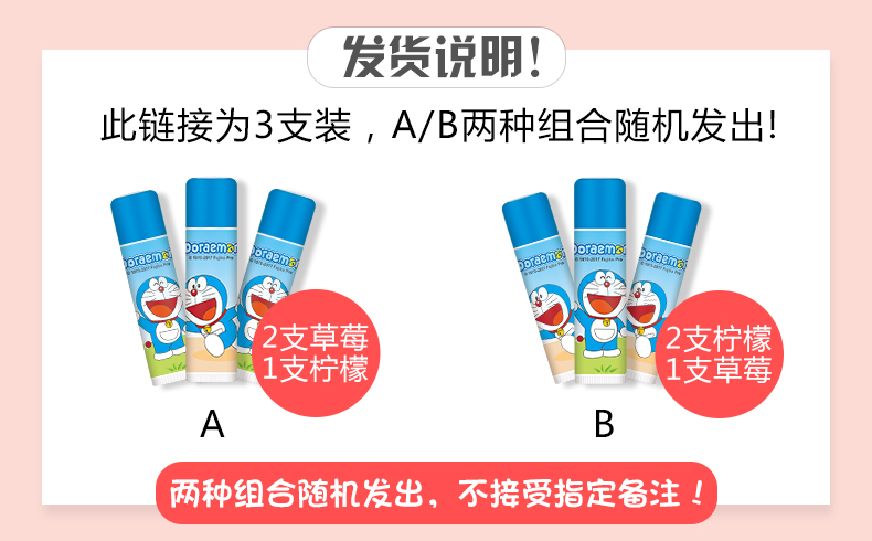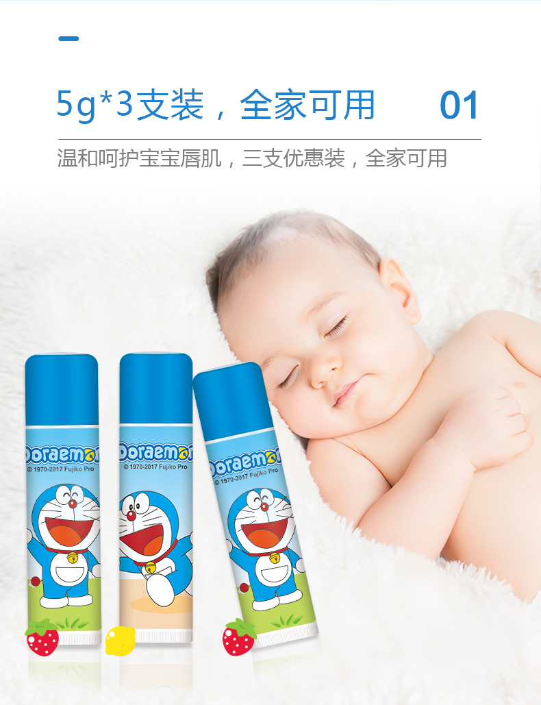 【哆啦a梦】线下商场同款!保湿滋润纯膏,补水防干裂,食品级原料,柠檬草莓5g*3支装,蜂蜡滋润保湿。