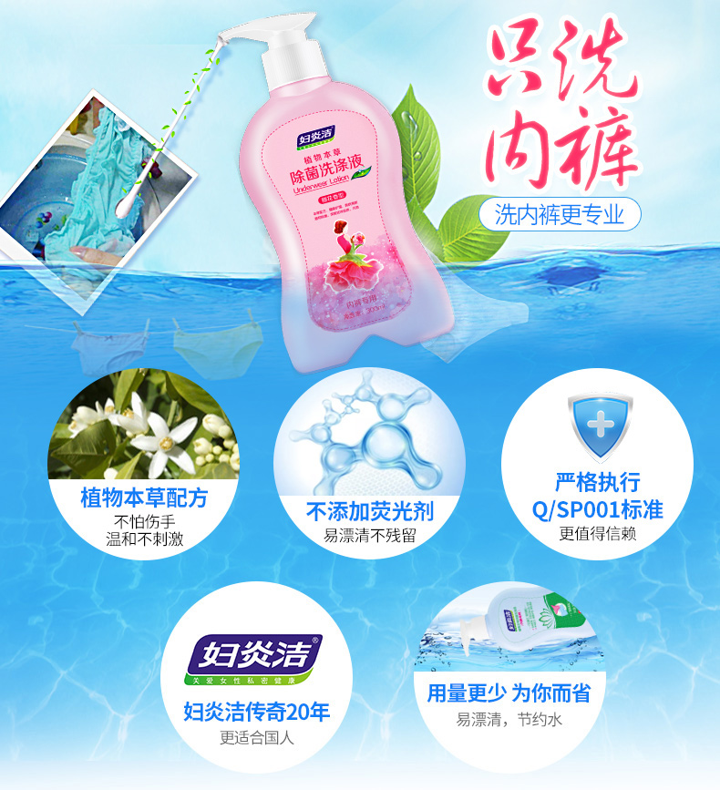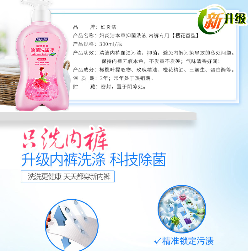 【超值300ml】【妇炎洁知名品牌】看不到的脏才是真脏,专用洗内衣裤,天然植物提取物,温和不刺激,99%杀菌抑菌,深层清洁,去异味,抑菌祛渍,姨妈期的血渍不再怕,超划算哦!
