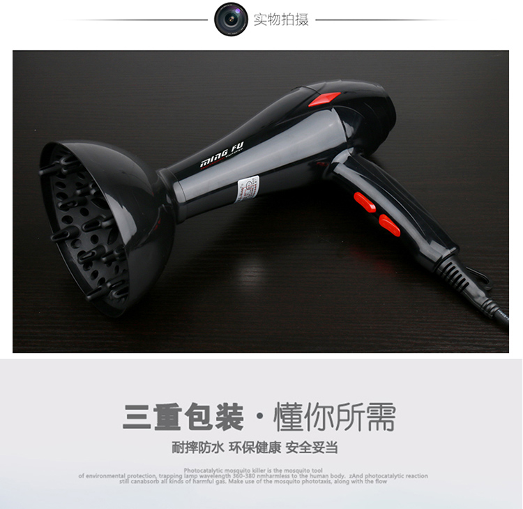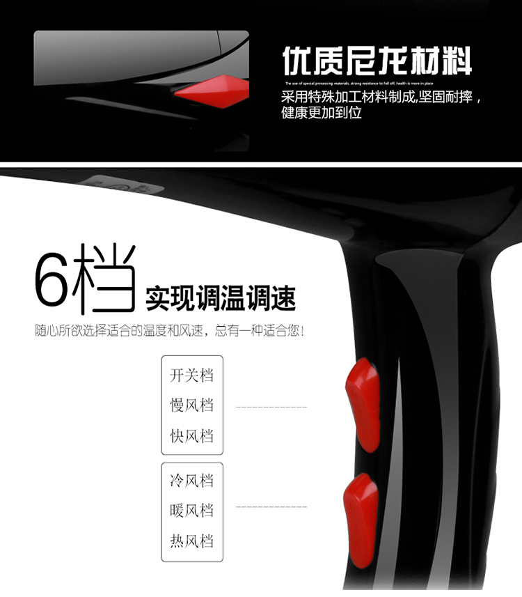 【赠品多多】家用蓝光负离子型2000W功率,进口耐高温外壳,进口德国电机,60度恒温护发,使头发吹后水润亮泽,飘香型吹出的风带淡淡清香味,发廊专业型大功率。【赠运险费】