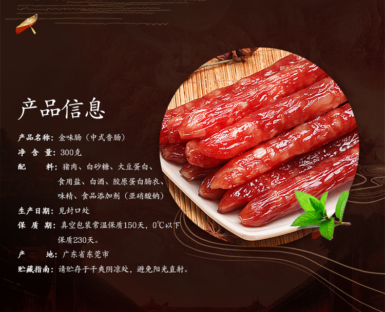 金鳌金味肠,广式风味,鲜香美味,香气扑鼻,吃完回味无穷~
