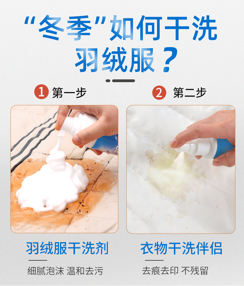 【买一送一!免水洗不留印】羽绒服干洗神器,干洗剂去污不留印,一喷一擦,干净如新,解决冬天清洗羽绒服的苦恼!深层去污免水洗,不留印记,轻松解决多种污渍!拼手速抢!