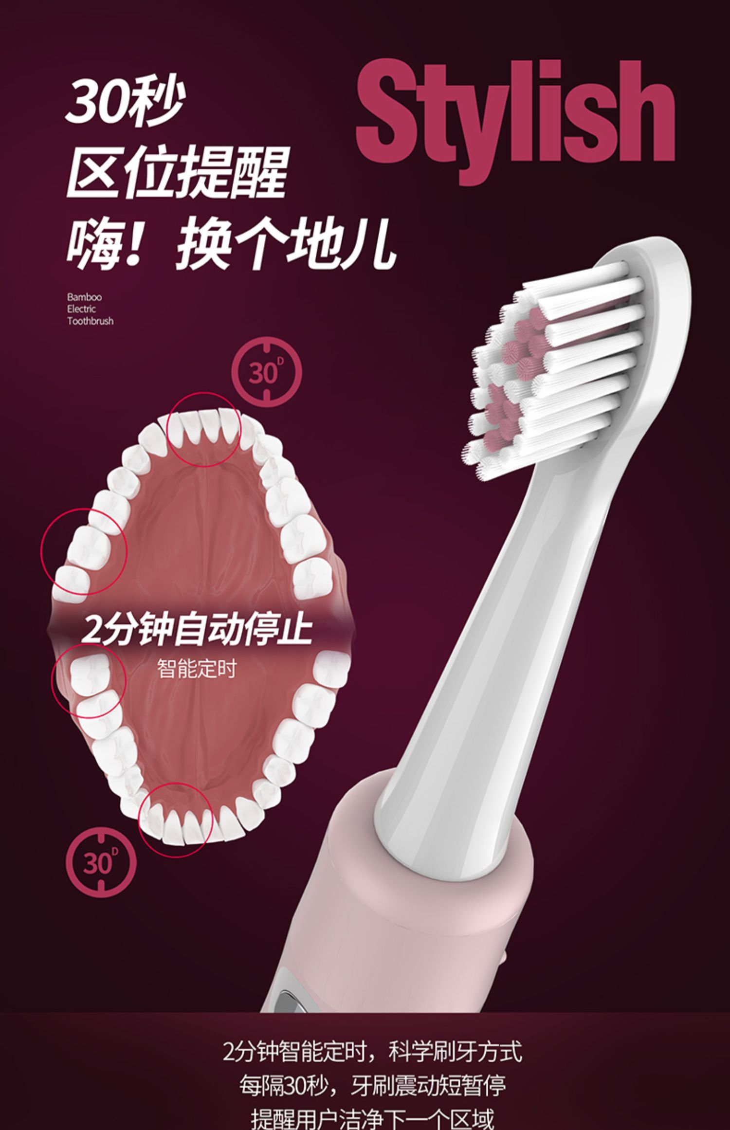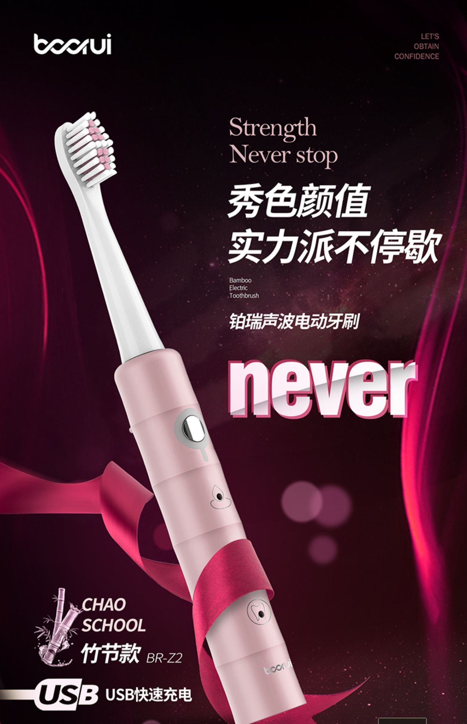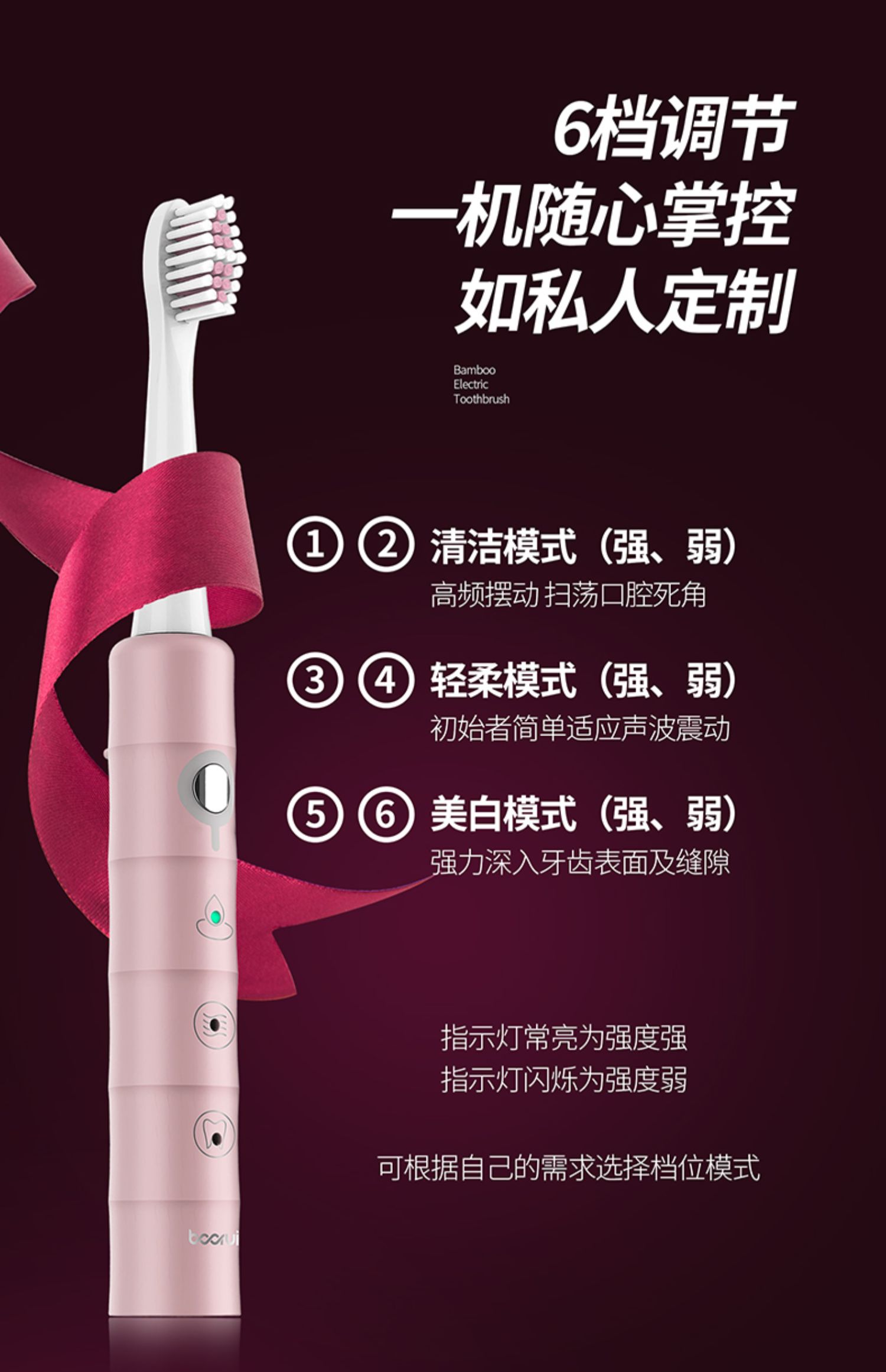 【赠专用支架】铂瑞全新升级款,USB快速充电设计,杜绝低价电池款;六档双频设计,独特竹节式机身;2分钟智能定时,30秒区域提醒,科学方式刷牙;声波洁净,舒适护齿【赠运费险】