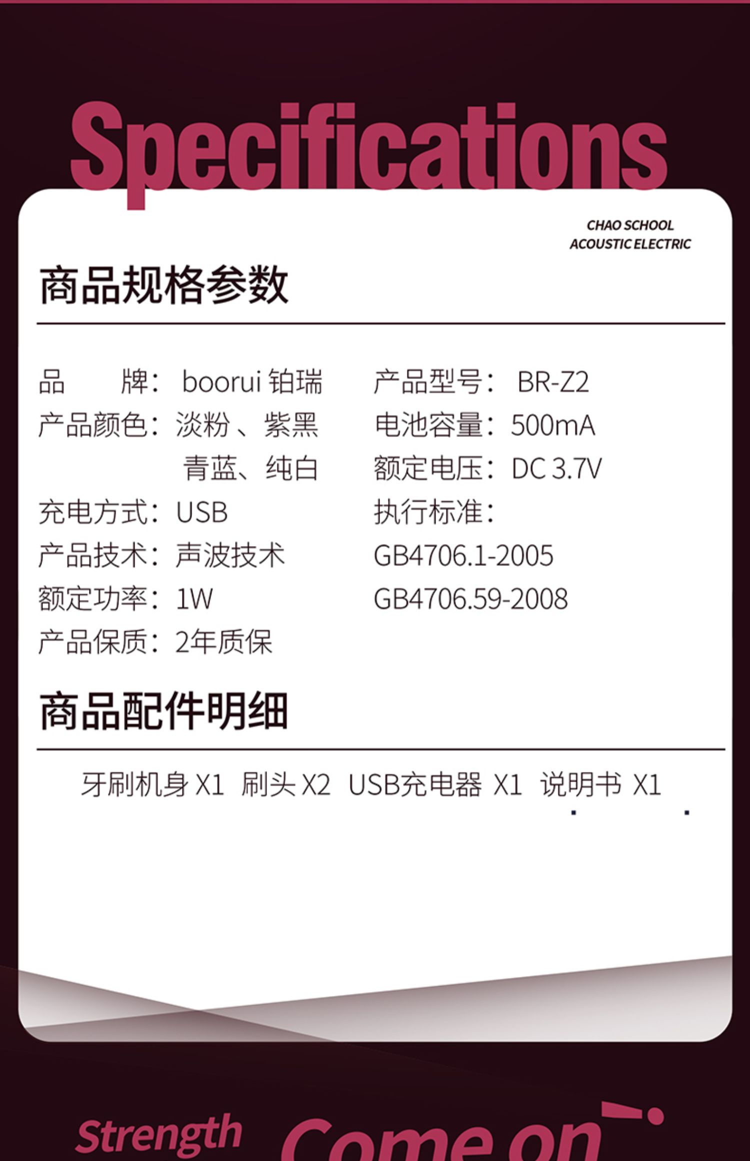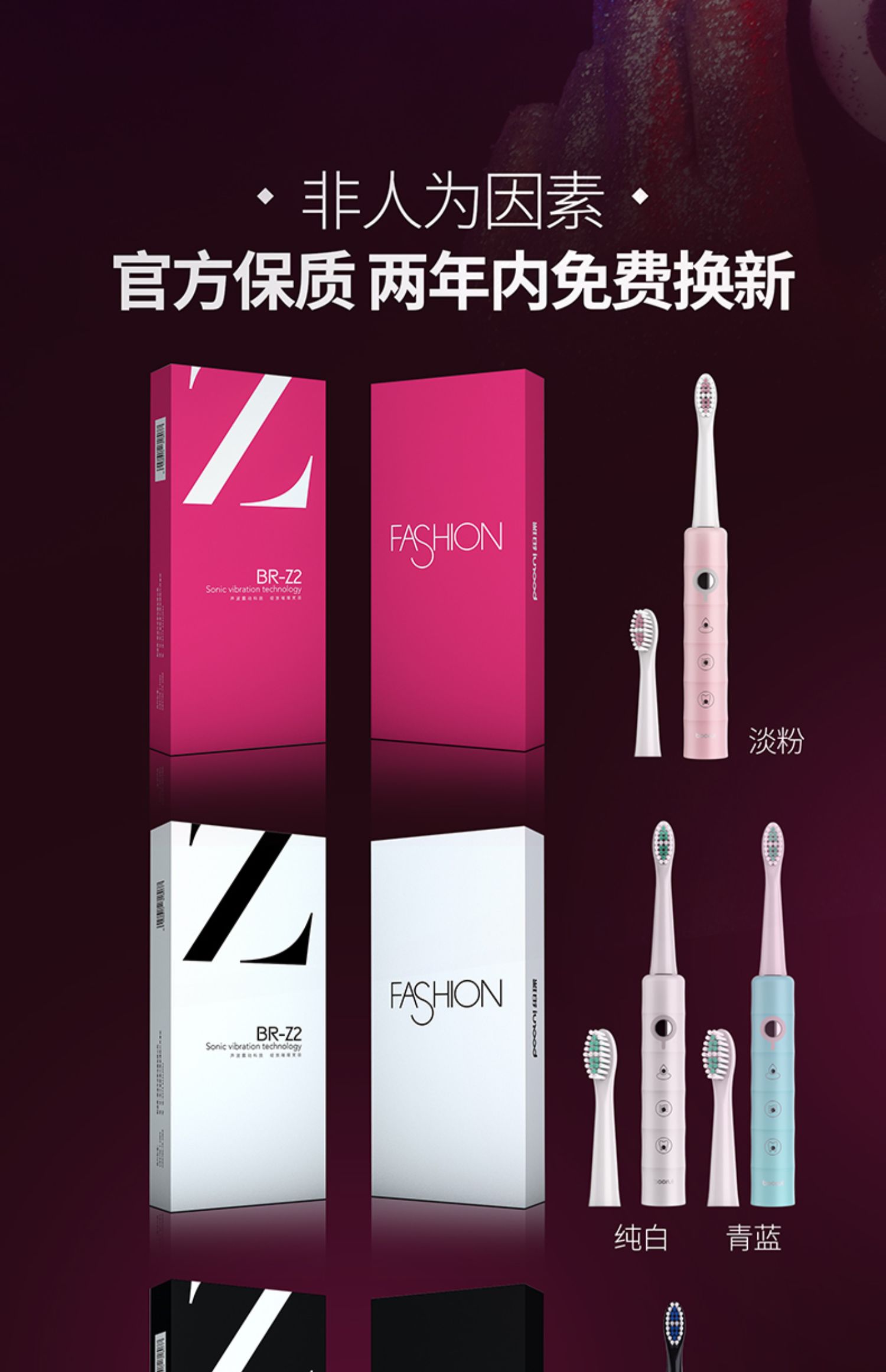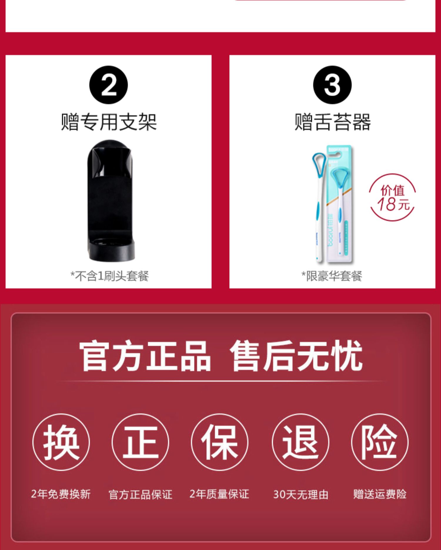 【赠专用支架】铂瑞全新升级款,USB快速充电设计,杜绝低价电池款;六档双频设计,独特竹节式机身;2分钟智能定时,30秒区域提醒,科学方式刷牙;声波洁净,舒适护齿【赠运费险】