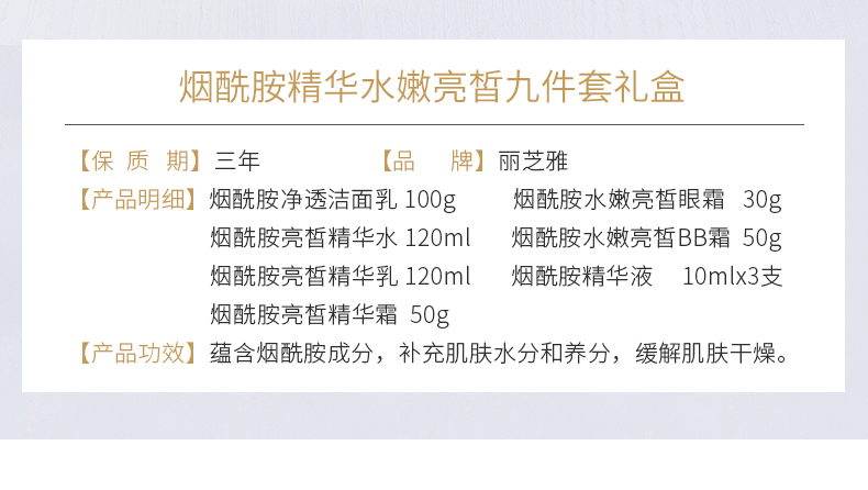 【9件套】洁面乳+精华水+精华乳+精华霜+眼霜+BB霜+烟酰胺精华液3支】烟酰胺套装,紧致弹嫩,水光嫩滑,改善暗哑,补水保湿,舒缓肌肤,养出通透白皙好肤色,一套守护你的青春颜值【赠运费险】