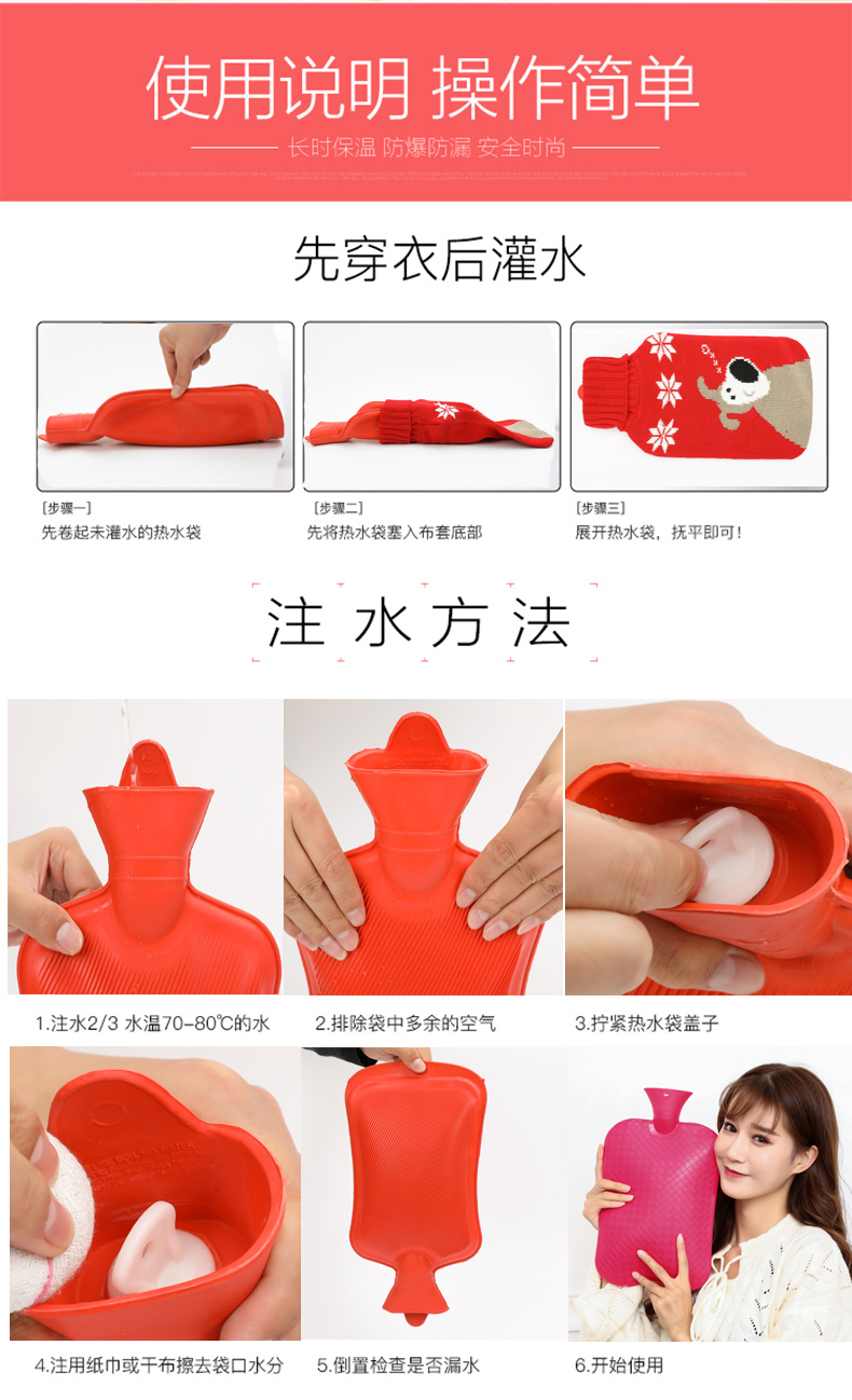 经典橡胶热水袋,环保时尚,保温持久,加厚防烫,防爆防漏,将安全进行到期
