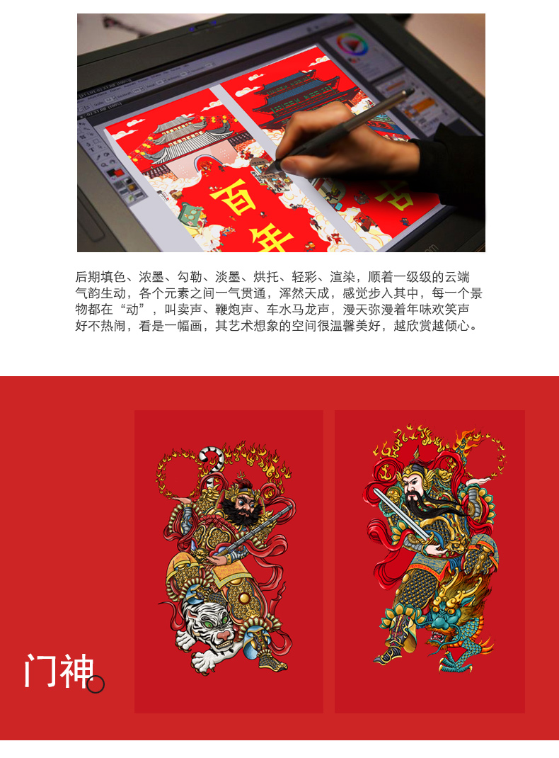 原价218元,现在秒杀18.8元,【纯手绘版】大师手绘珍藏版,一副涤荡心里的精神之作,一副无法复制的绝版艺术,不一样的年味风格;含对联,门神、年画、红包、福字、春条,原创设计。