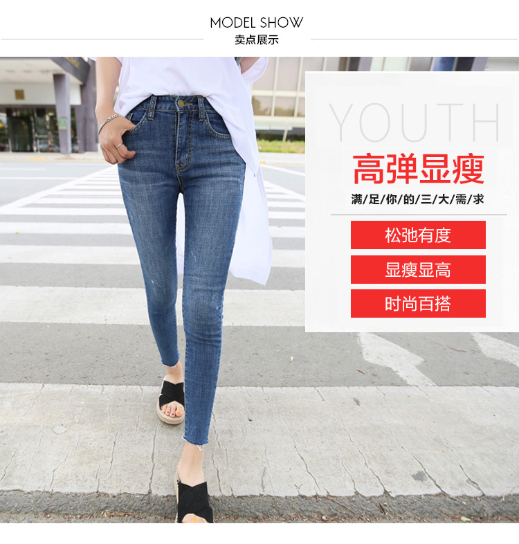 推荐【高端精品】十年牛仔裤经验,自有工厂,精选弹力牛仔布面料,经过无数次打版,精心裁剪,力求精益求精,高腰设计,收腹提臀,经典剪脚毛边,再次引领时尚,女神必备,亏本冲量,手慢无
