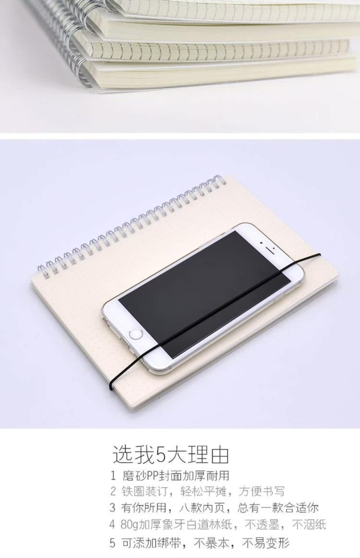 简约多功能绑带本,加厚磨砂,低反光米黄道林纸,双线圈不易掉页,实用,好用,多用途,多种内页可选!