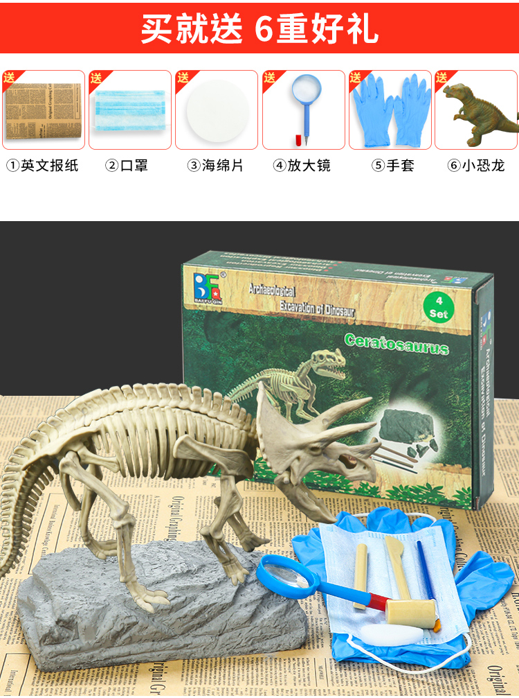 【今日推荐】新型diy恐龙拼装模型,环保材质,无毒无害,锻炼宝宝的耐心和动手能力,远离电子产品,从妈妈做起~【下单送配套放大镜、口罩等礼品五件套】