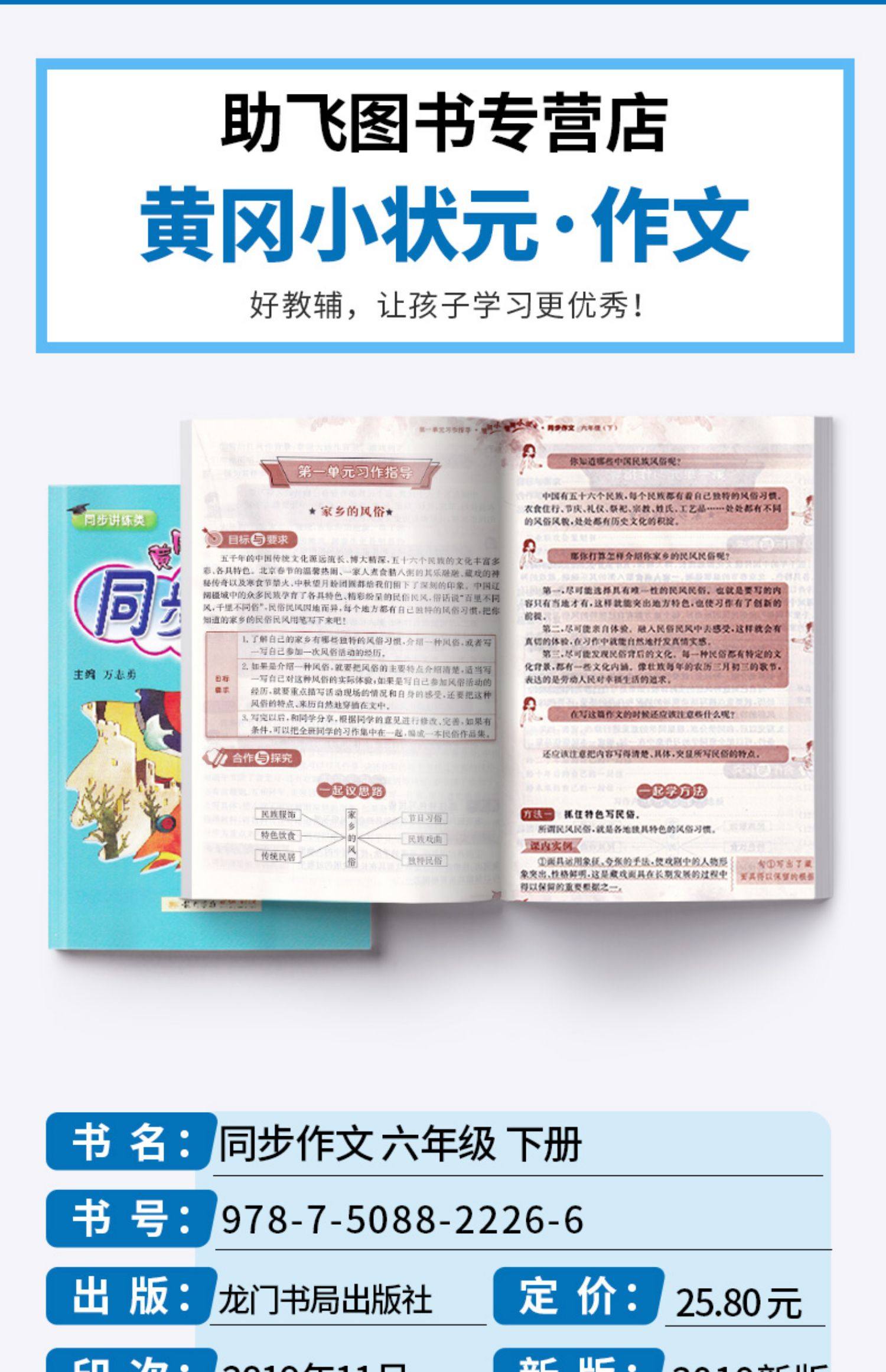 【助飞书店】【买一送一】黄冈小状元同步作文六年级下册部编版人教版,小学生语文6年级下册满分作文素材大全,创新优秀作文写作龙门书局精选资料书,提高孩子写作能力~必备!!
