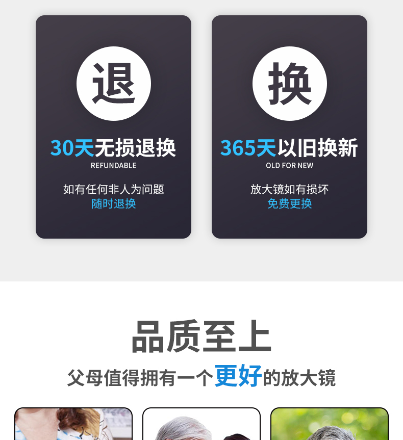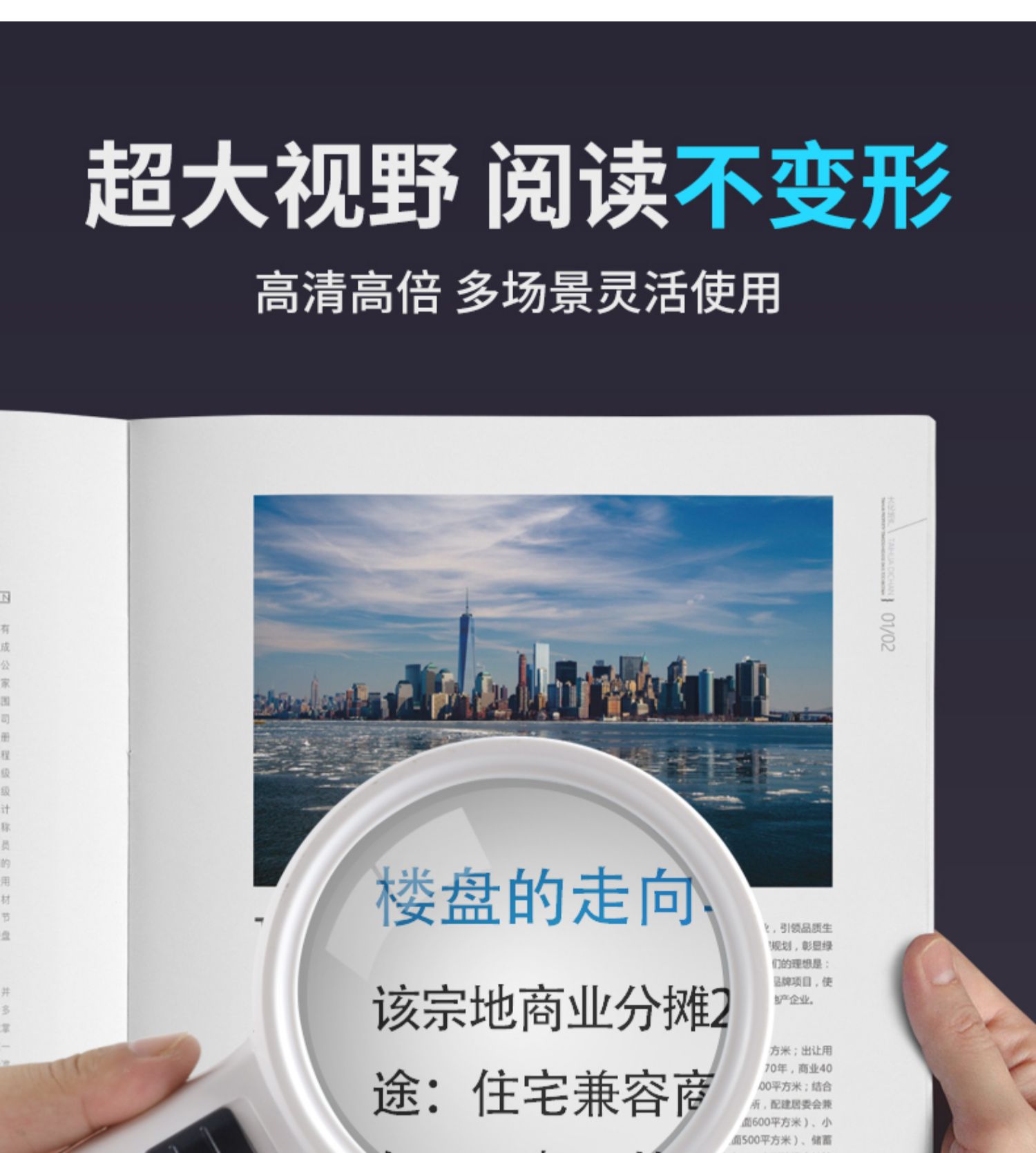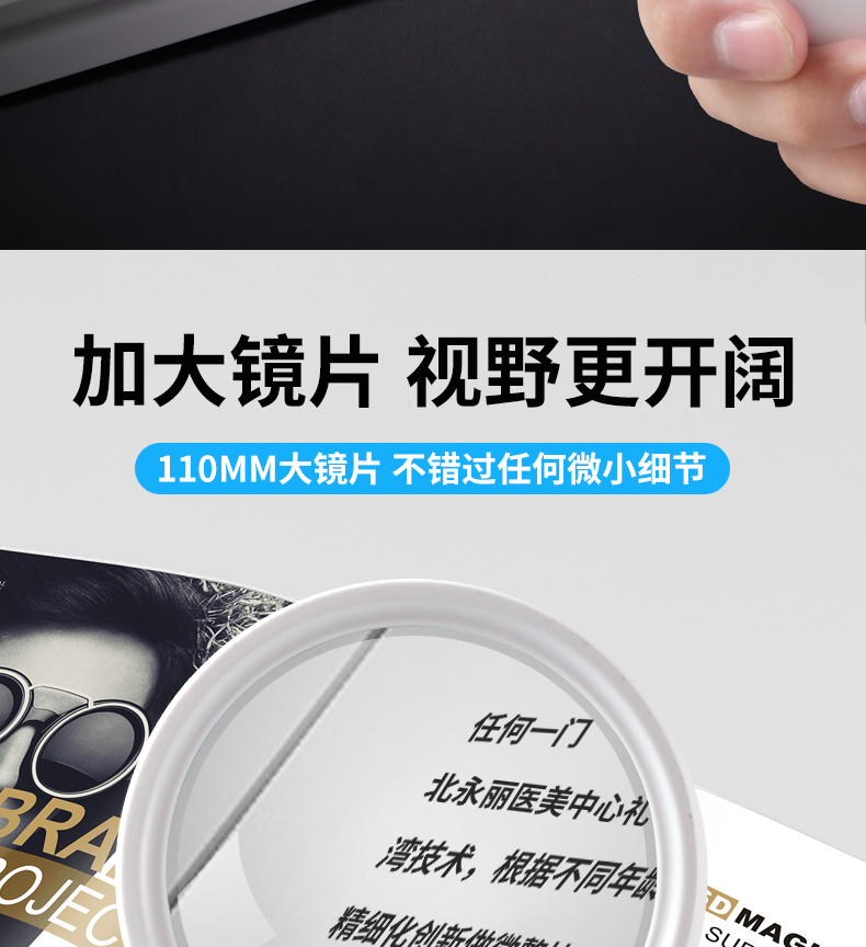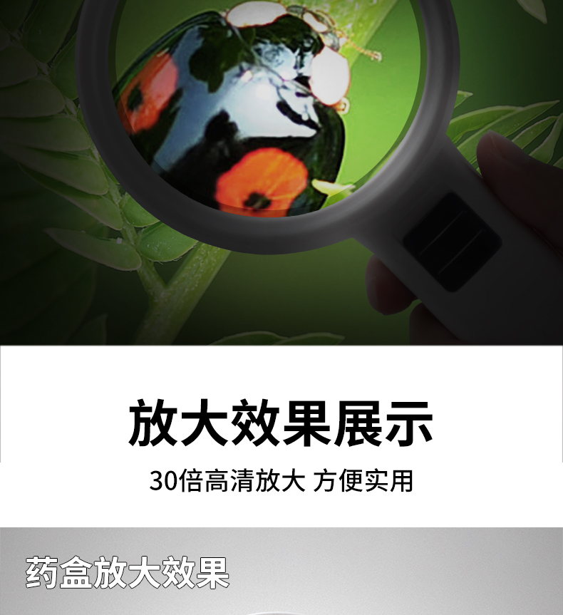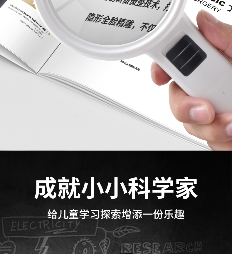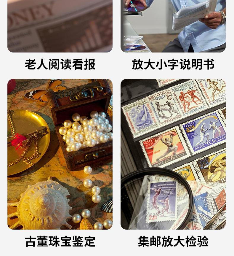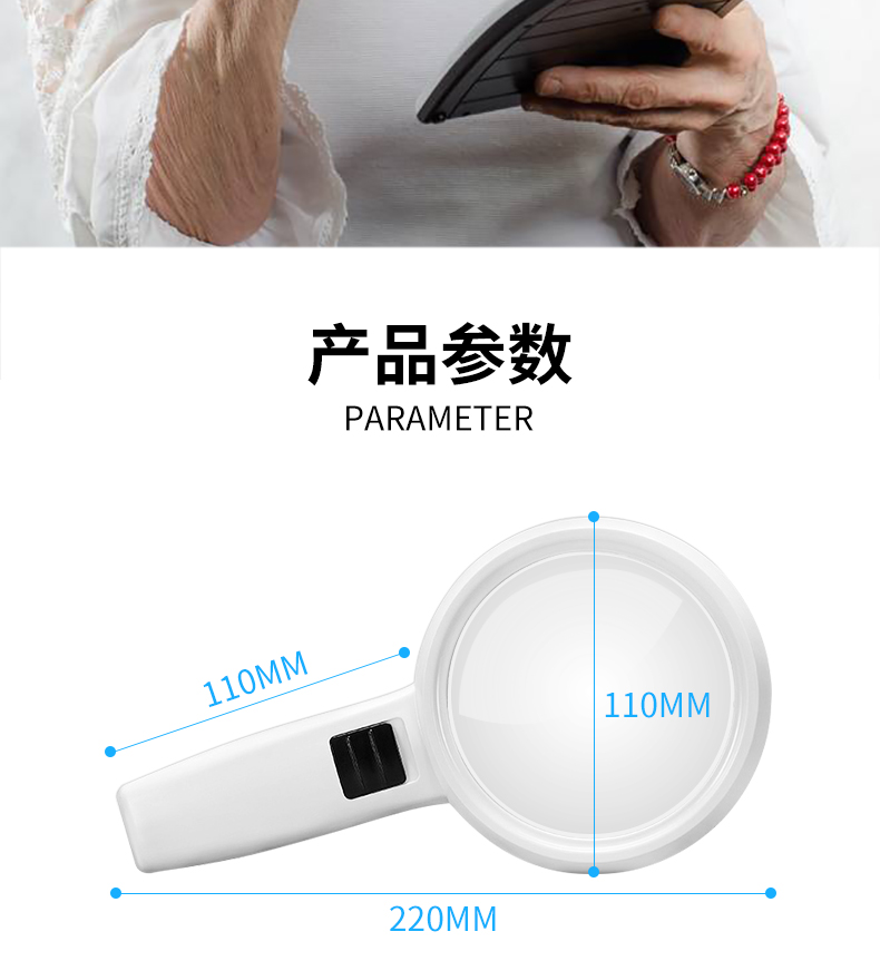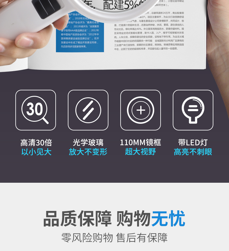 30倍高清放大,100MM厚度镜片光学手持式,放大镜带LED灯,随时开启夜间模式、老人阅读看报便携式,关注视力健康,送父母送长辈的好礼品,买就送高档礼品盒,擦拭布,【赠运费险】