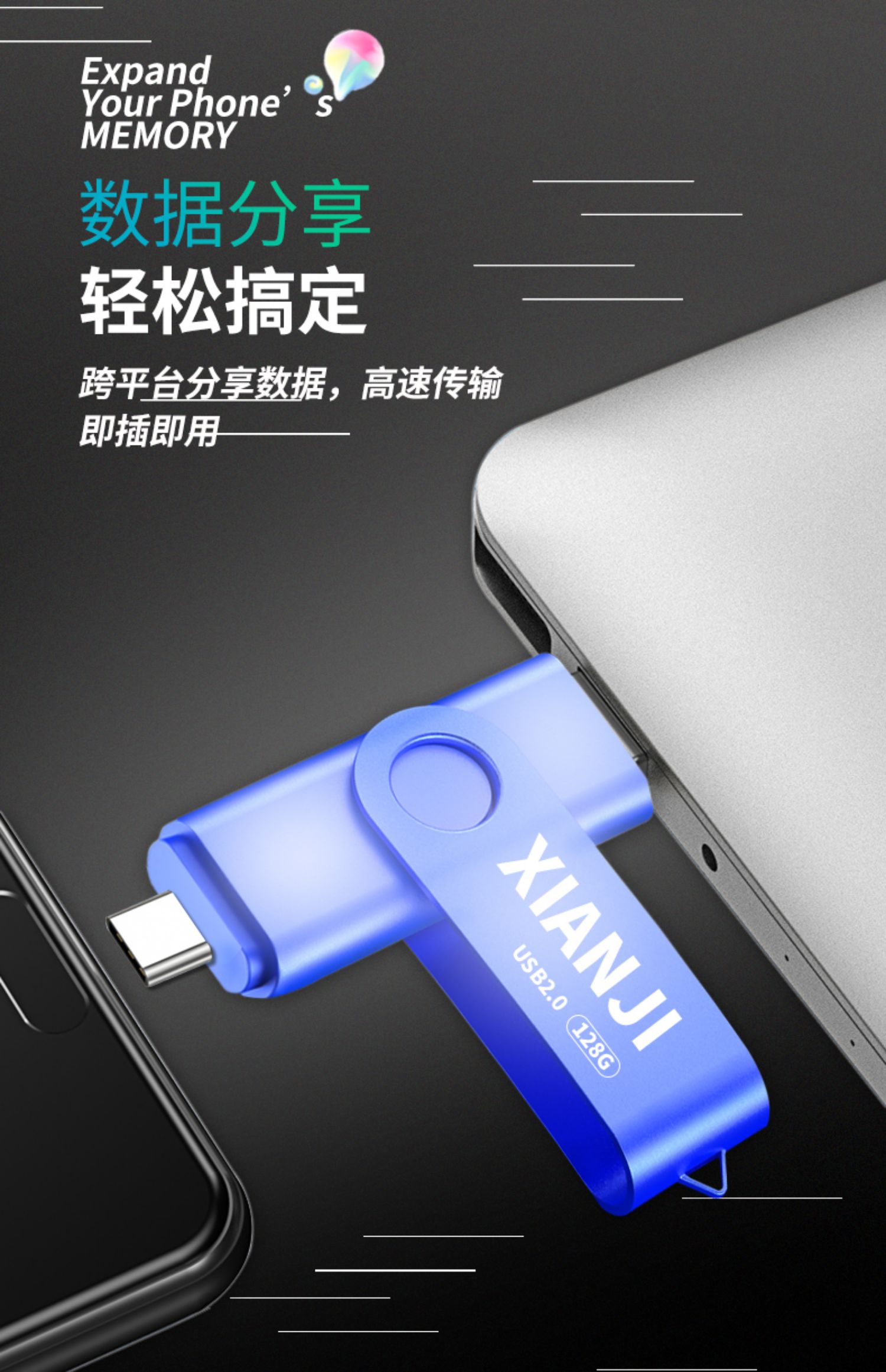 【抖音超火!手机电脑车载通用】128G手机U盘,即插即用,迷你小巧,快速读取,金属防水,精湛工艺,传输高效稳定,高容量,手机看大片再也不发愁!【赠运费险】