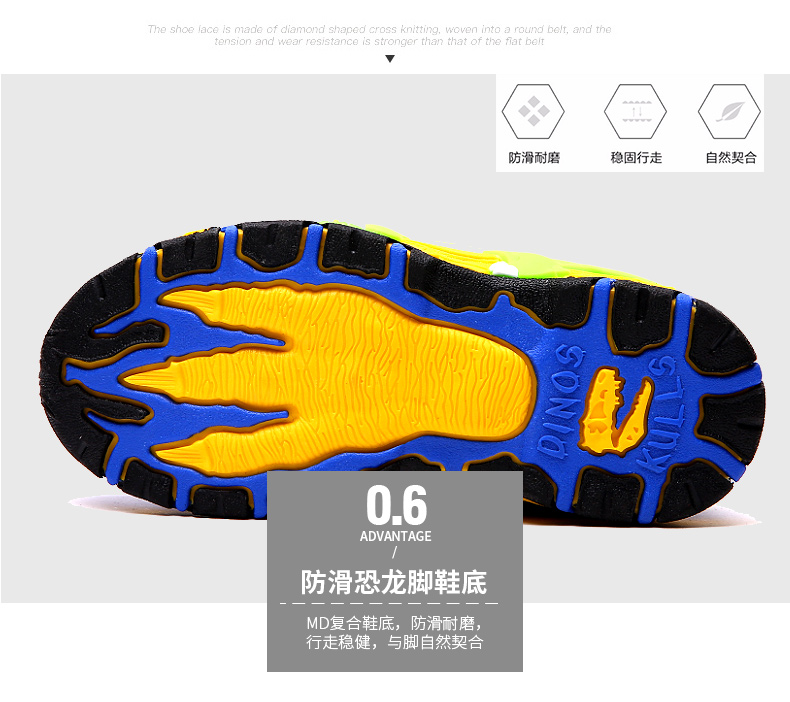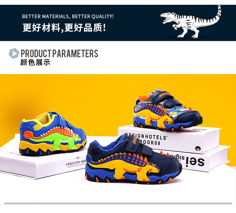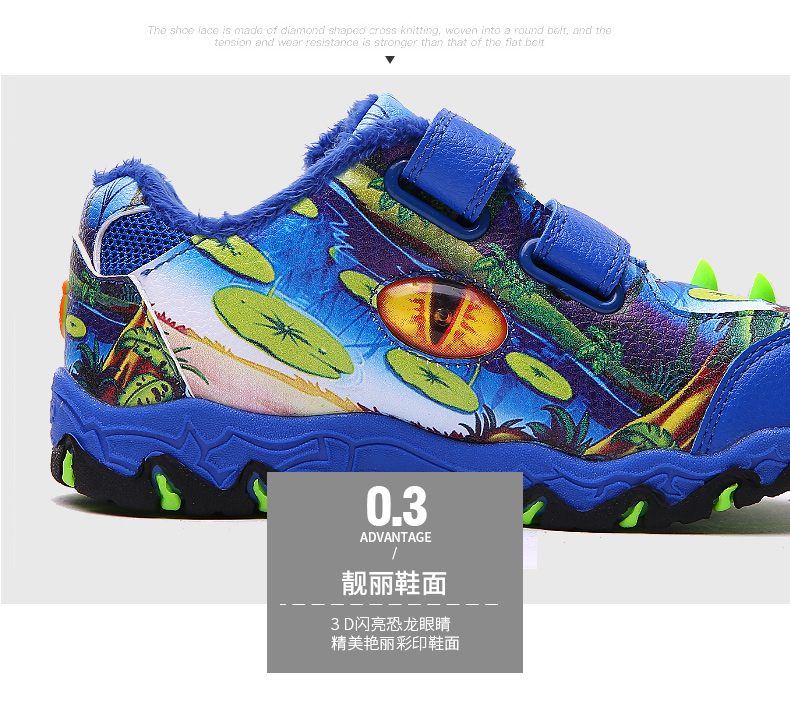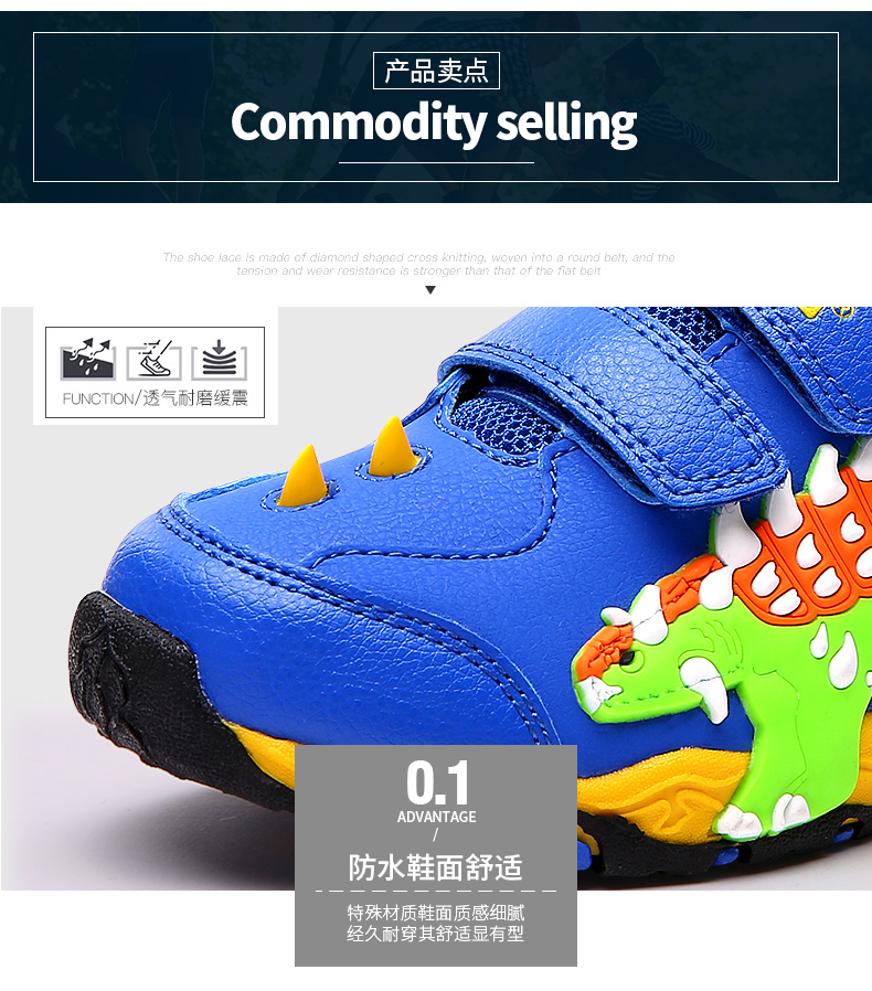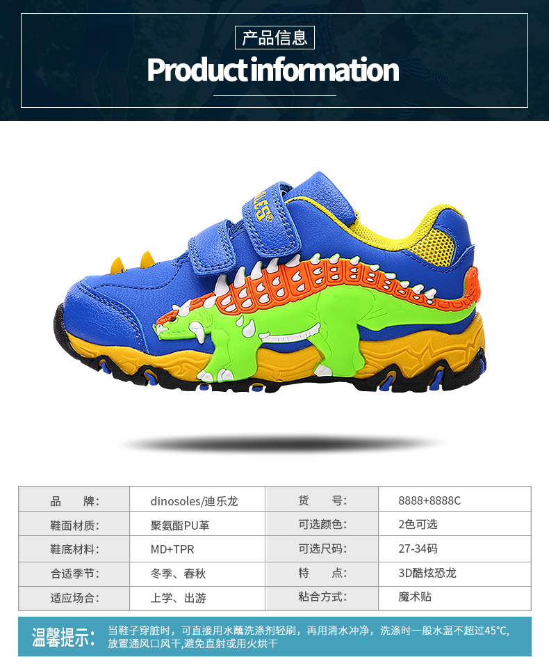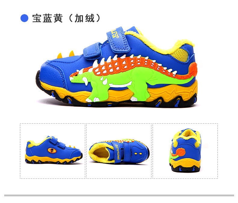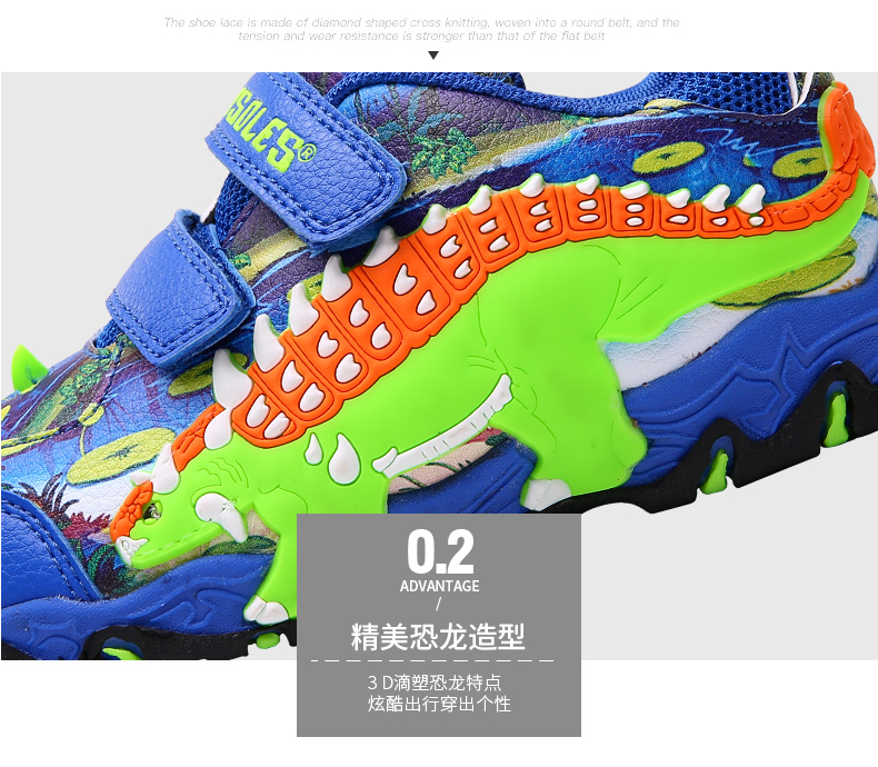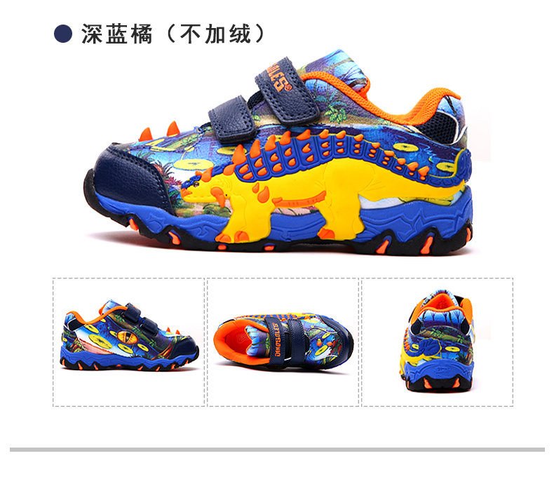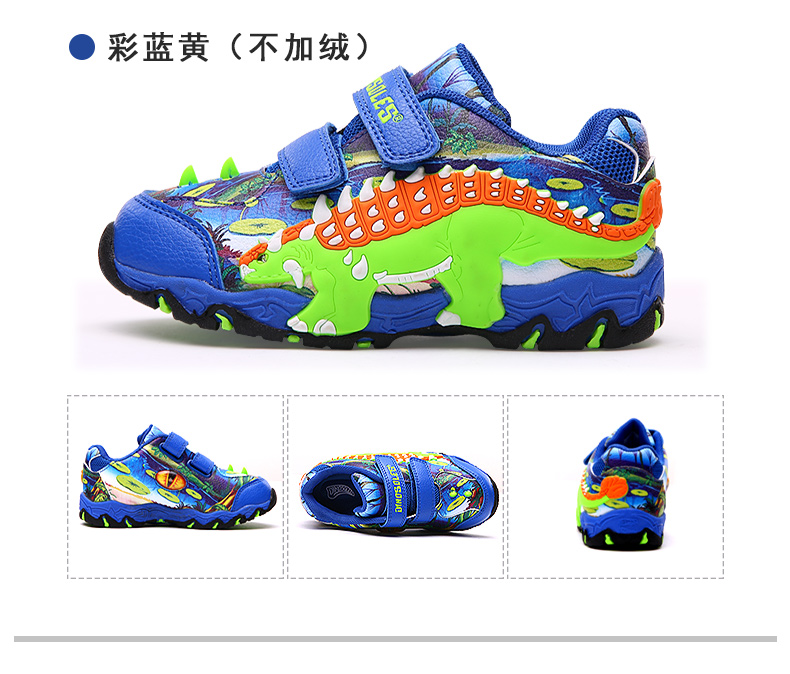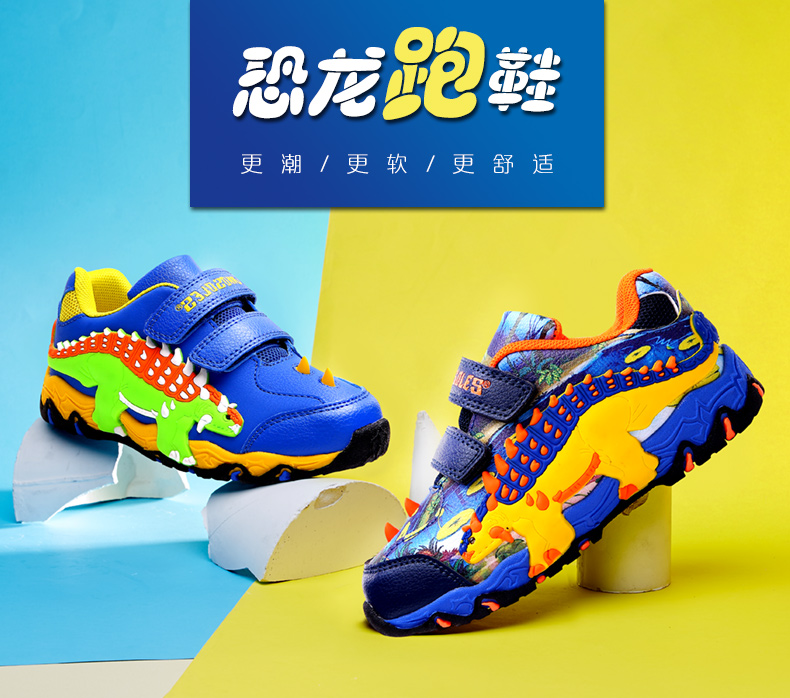源自美国,风靡全球的DINOSOLES(迪纳龙)恐龙跑鞋来到中国了!印彩PU材质,透气耐磨缓震,运动轻盈!防撞橡胶鞋头,保护孩子脚趾不受伤,3D闪亮恐龙眼,童趣炫酷,孩子超爱!
