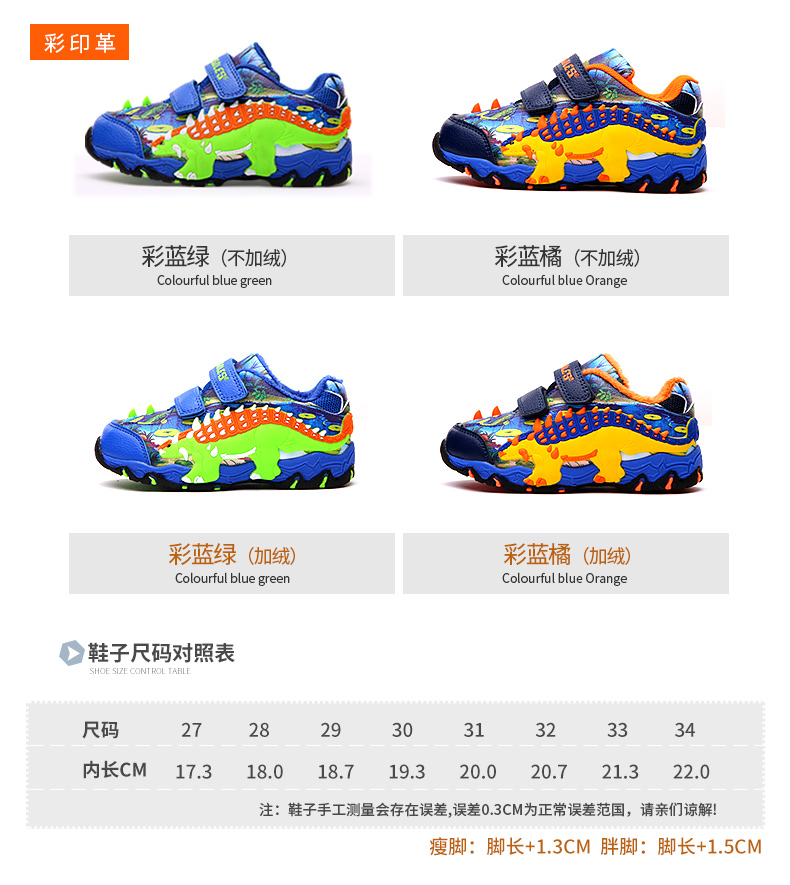 【迪纳龙】闪灯秋冬中大童恐龙鞋