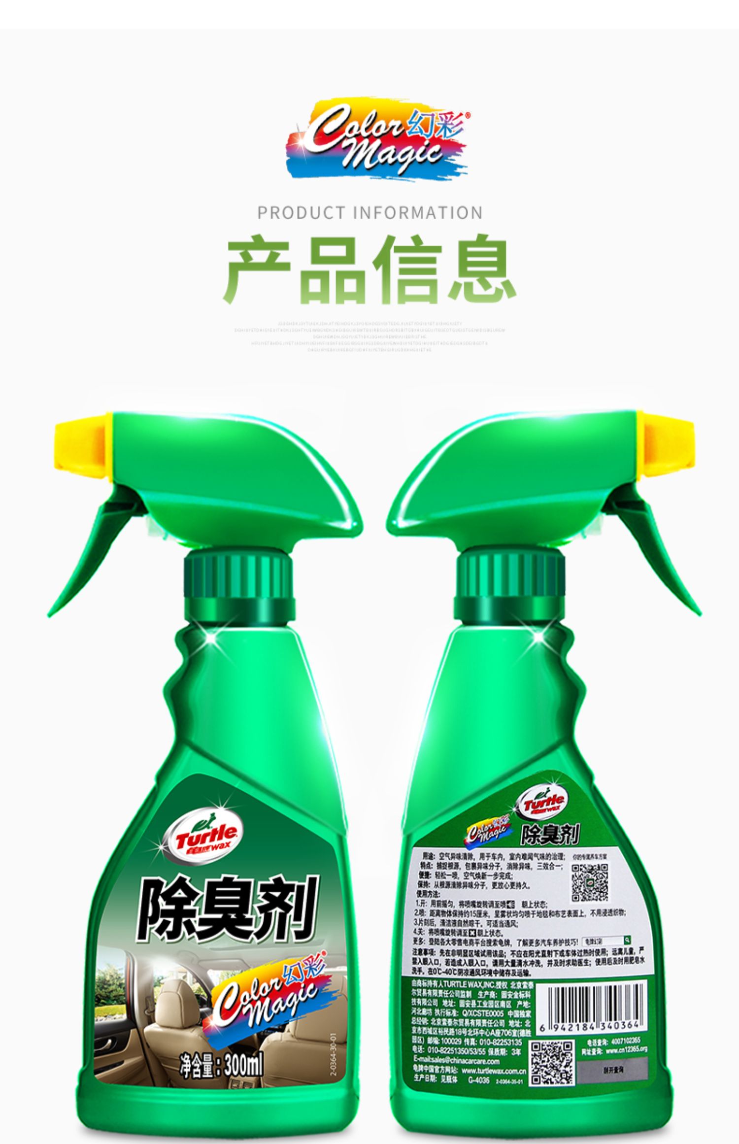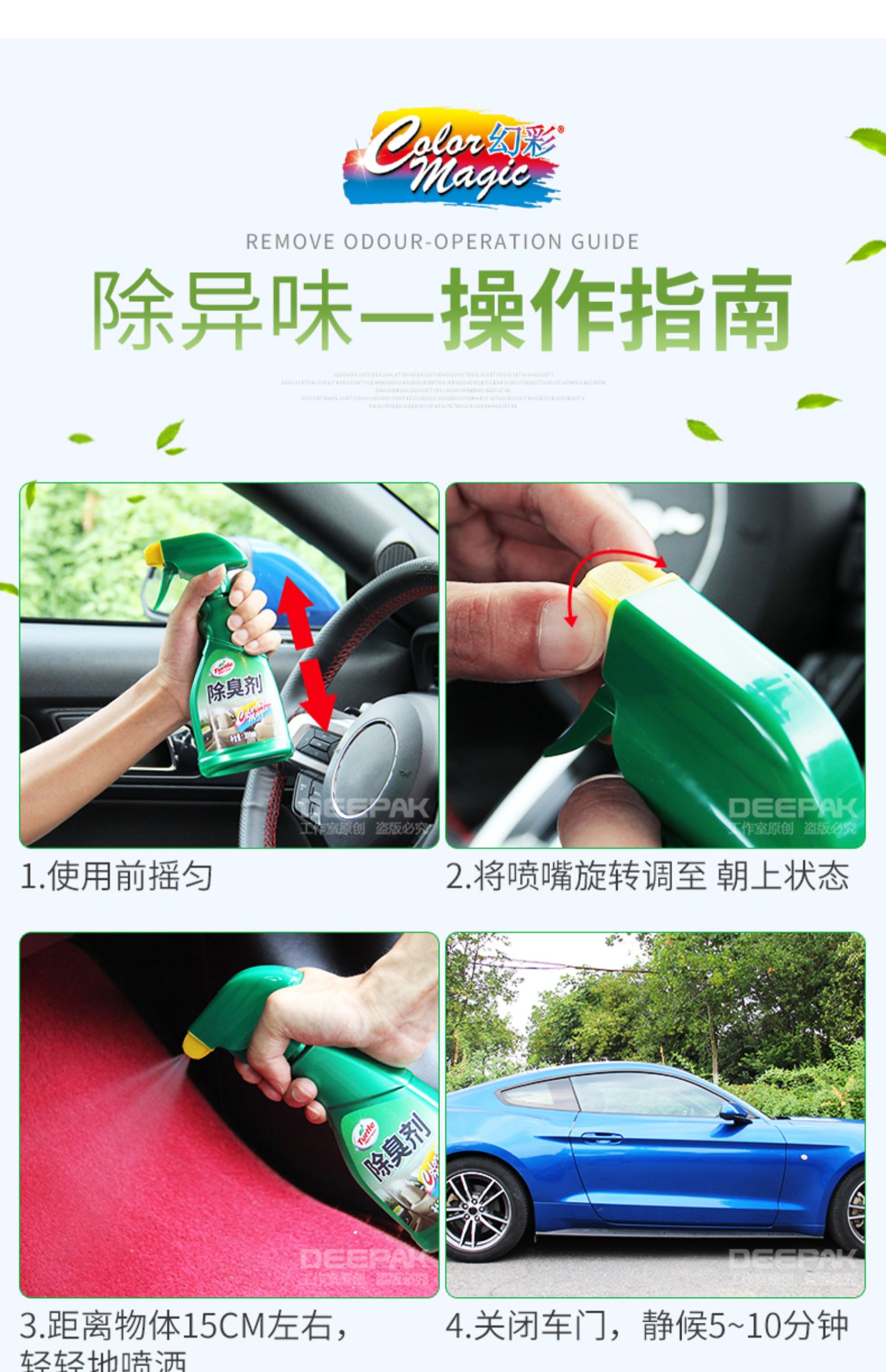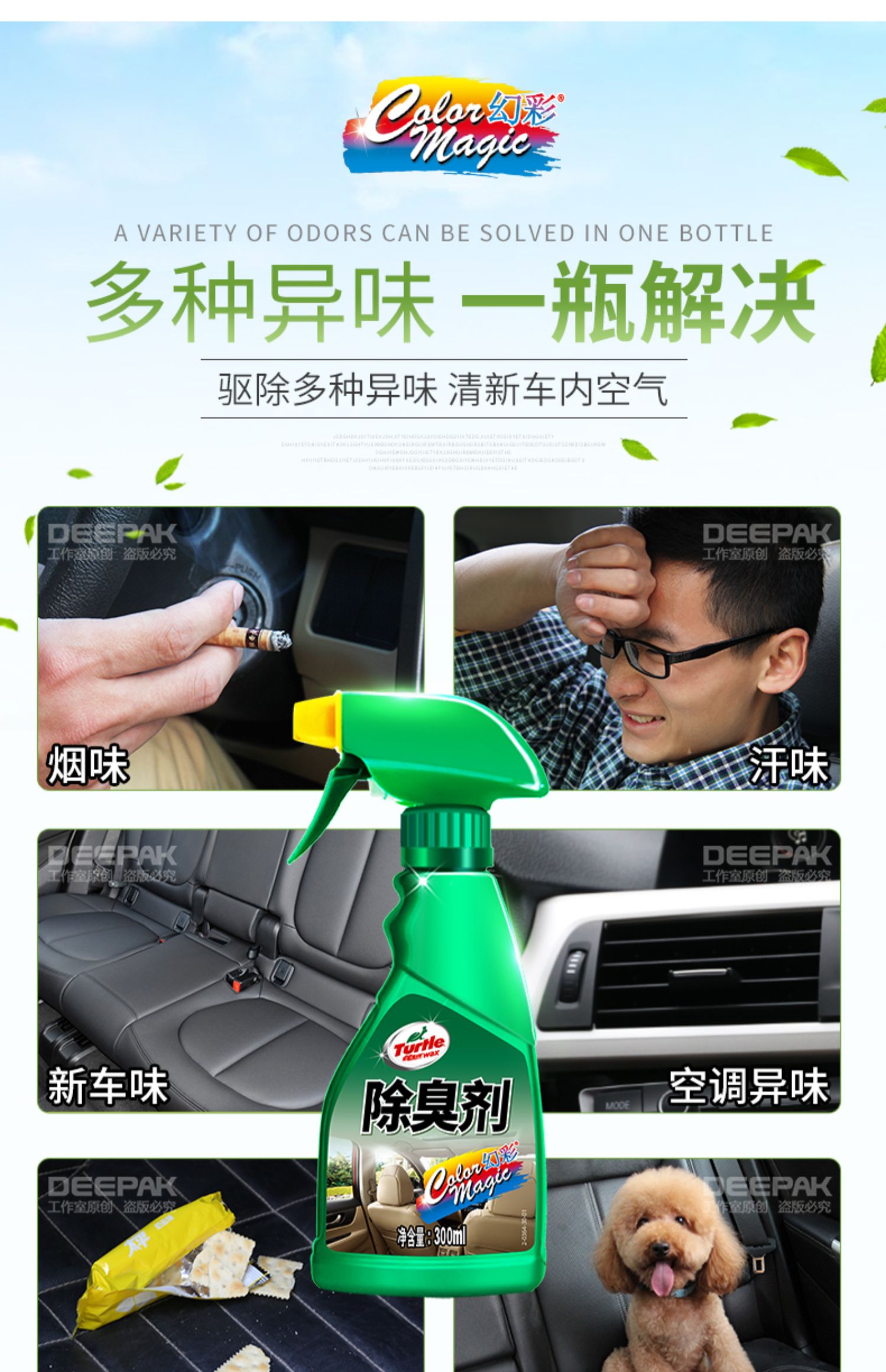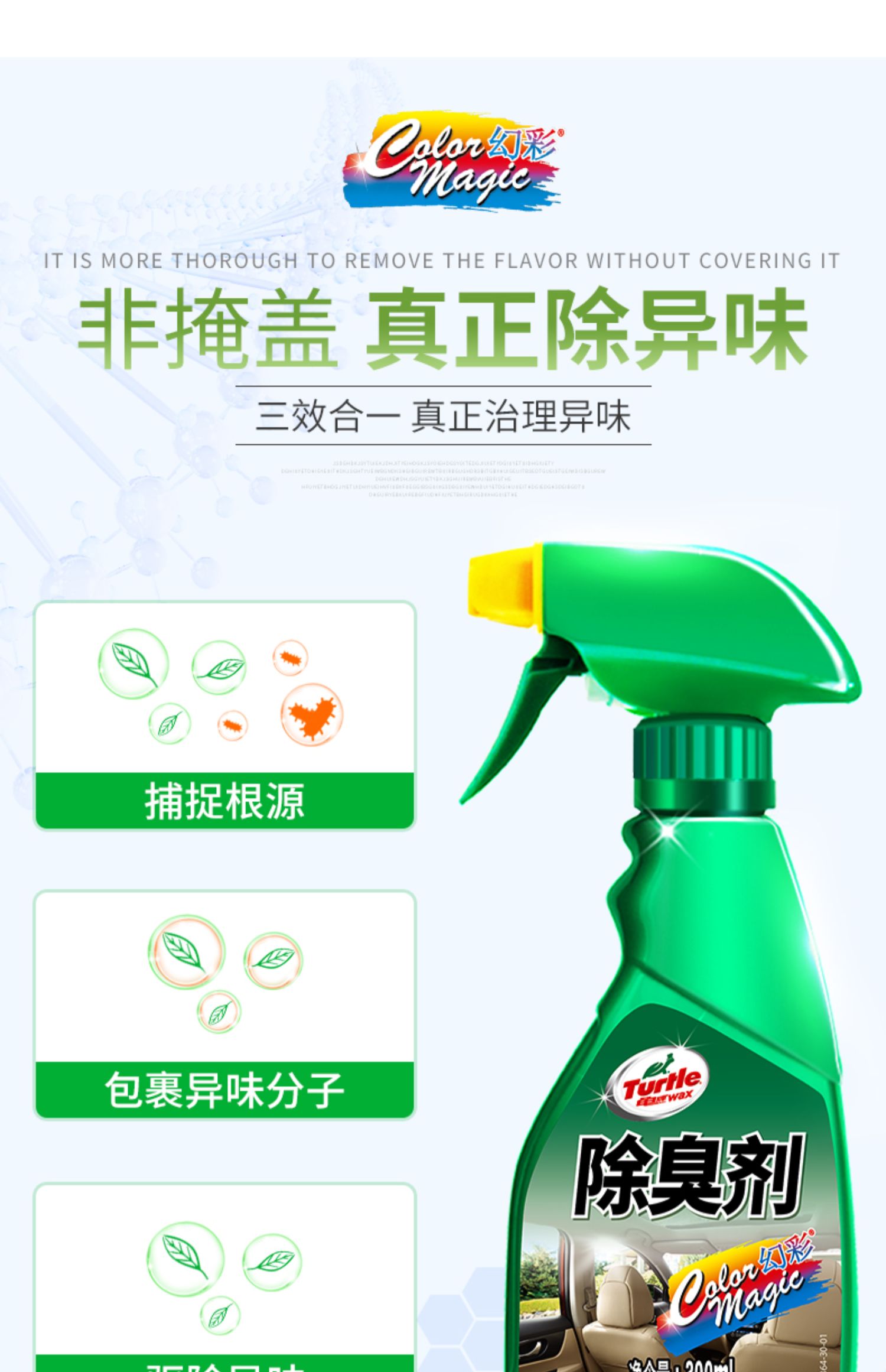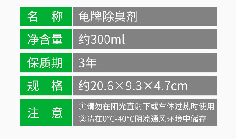 龟牌车内喷雾式消臭剂,快速除味,不伤内饰,消除各种异味,抗菌杀毒,温和配方,清新车内空气,无毒无害,余味清新更舒适!买就送30g竹炭包
