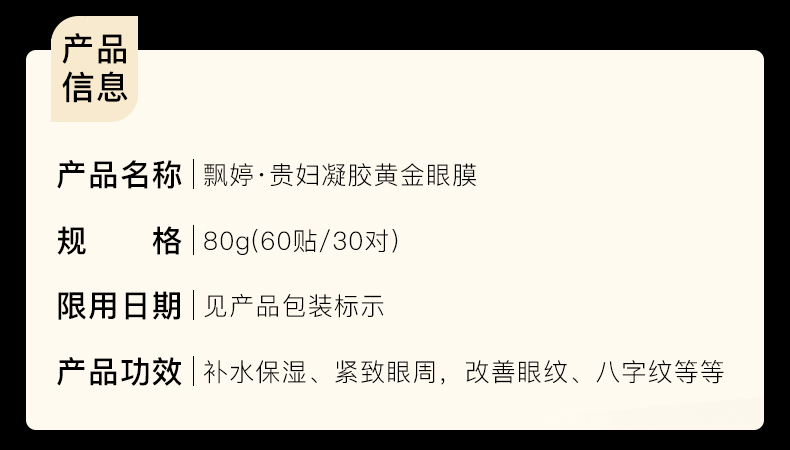 【拍两件29.9元】经常加班,熬夜追剧,黑眼圈、小细纹都出来了,瞬间老了10岁,飘婷24K黄金眼膜贴起来!修复眼周受损肌肤,祛除眼角皱纹、提亮肤色,一贴多用!
