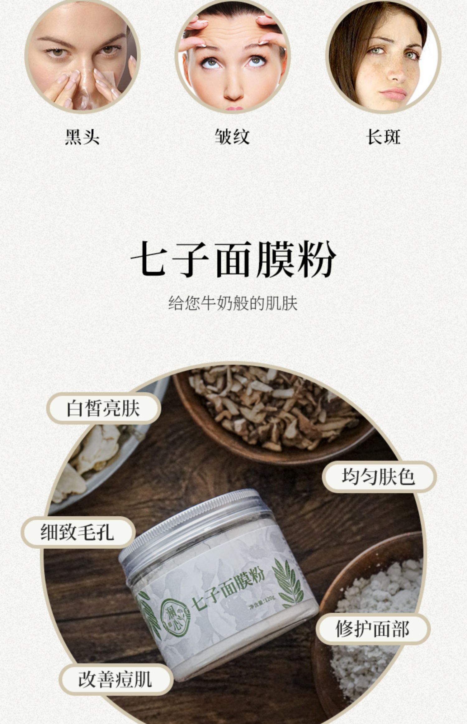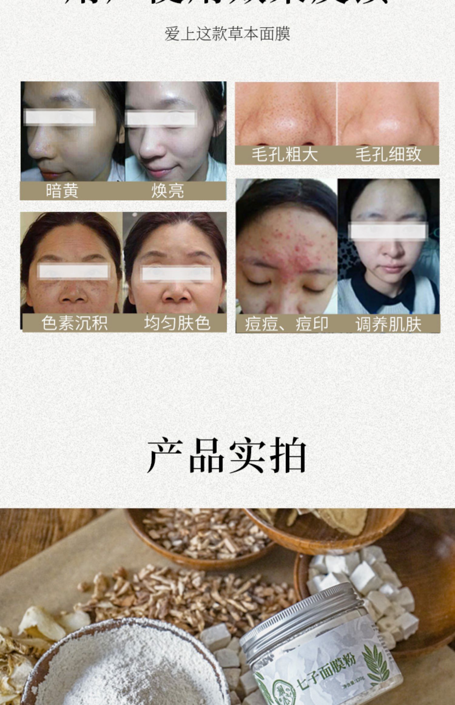 【旗舰店正品】多效七子珍珠面膜粉,改善暗沉,焕白除黄!粉质细腻易吸收,不含杂质,具有美白、祛痘、控油和淡斑等功效,有效改善肤质,让你在这个冬天变身白嫩美人【过敏包退】