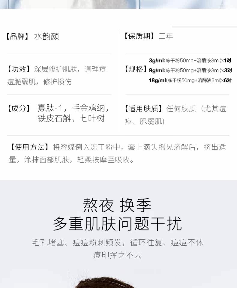 水韵颜冻干粉组合,解决痘痘肌肤烦恼,祛除痘印痘坑,改善敏感脆弱肌肤,轻轻松松拥有完美肌肤!早点使用,下一个女神/帅哥就是你