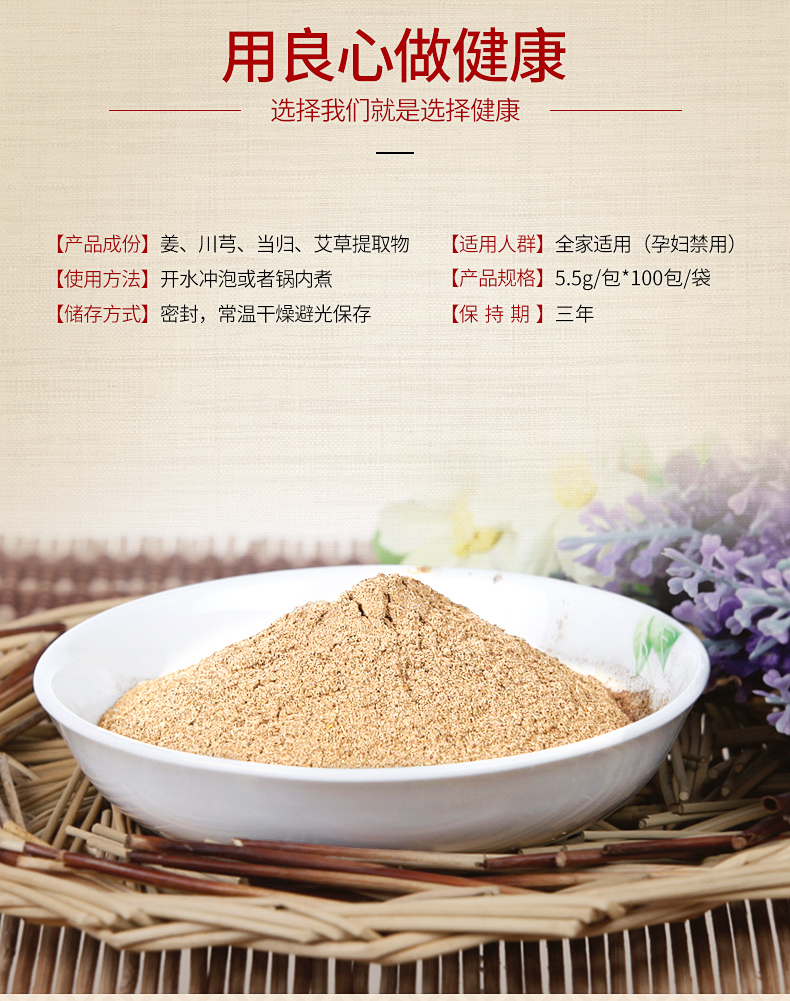 天然草木制成老姜足浴粉,祛除风寒,冬季泡脚利器,纯天然材料制成,告别湿气,一身轻松。100包5.5g共550克。足足一斤多,超级实惠