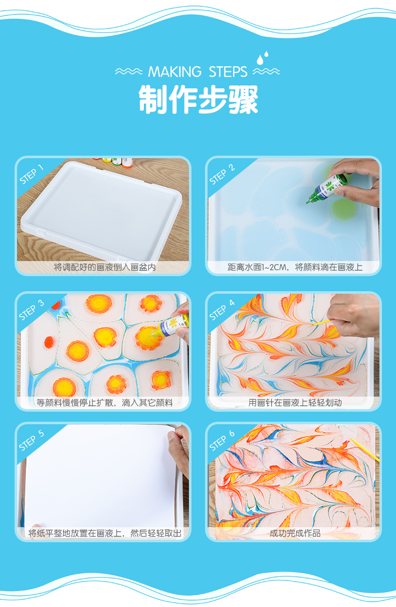 儿童水拓画套装颜料安全画美术工具浮水画