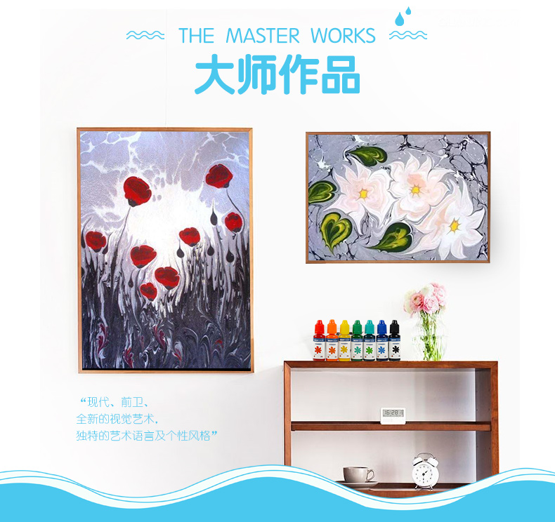 神奇水上绘画艺术,零基础,环保安全颜料,孩子玩的更放心,有视频指导,一学就会。