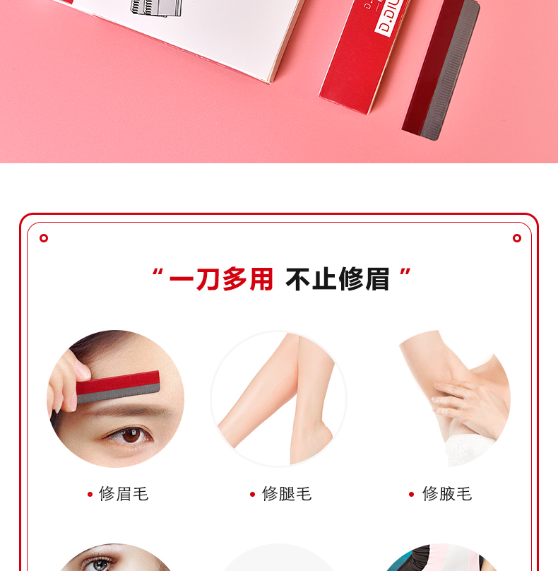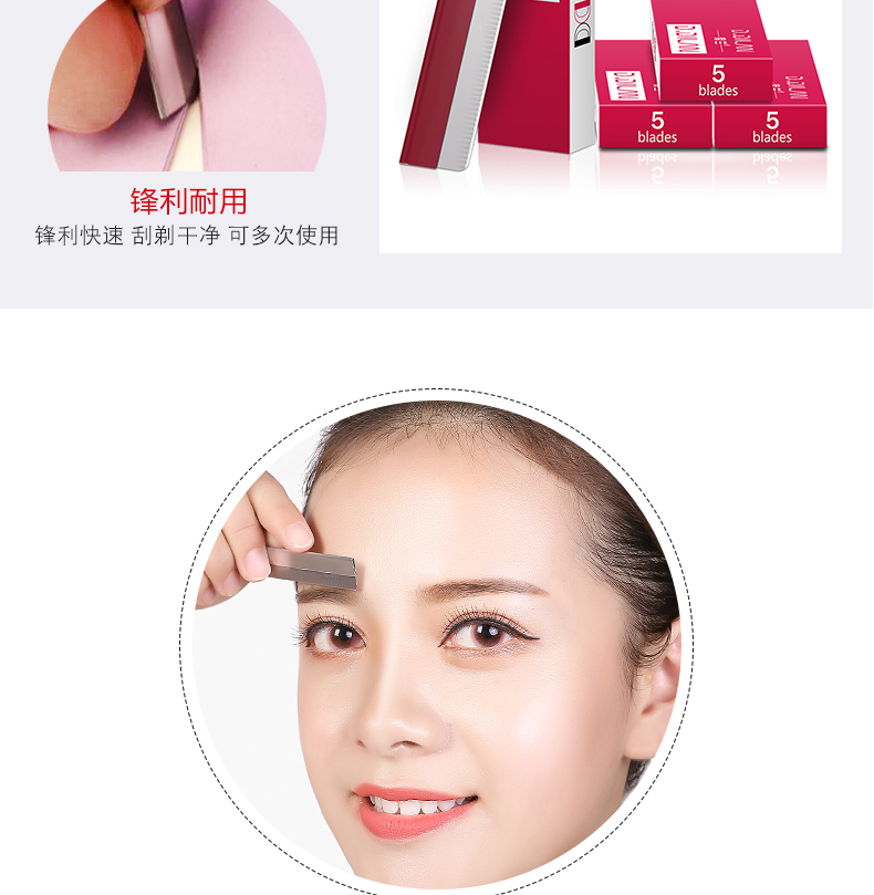 【女神修眉的必备神器】优质合金材质,刀片很锋利,轻轻的修刮完后,没有任何不适,握感舒适易操作,刮脸修眉都ok,从此做个精致的小女人。