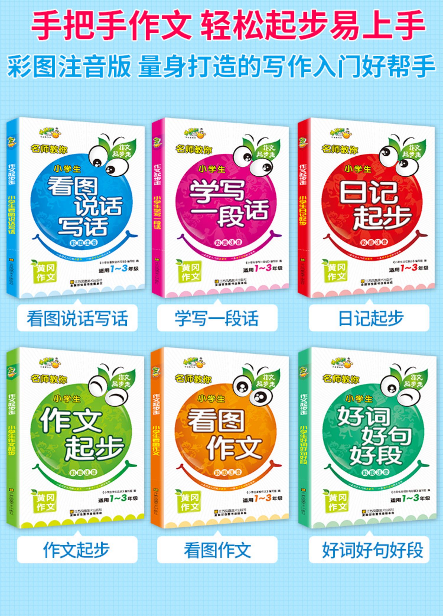 【全套6本,送练习册,118页超厚一本】小学生看图说话写话,1-3年级满分作文书,好词好句好段,状物、写景、写人、记事作文指导大全!大版本全彩印刷,名师点评,快速提高宝宝写作水平【赠运费险】