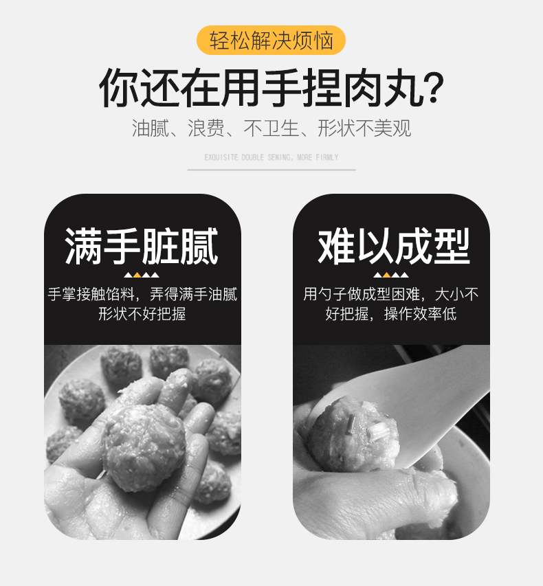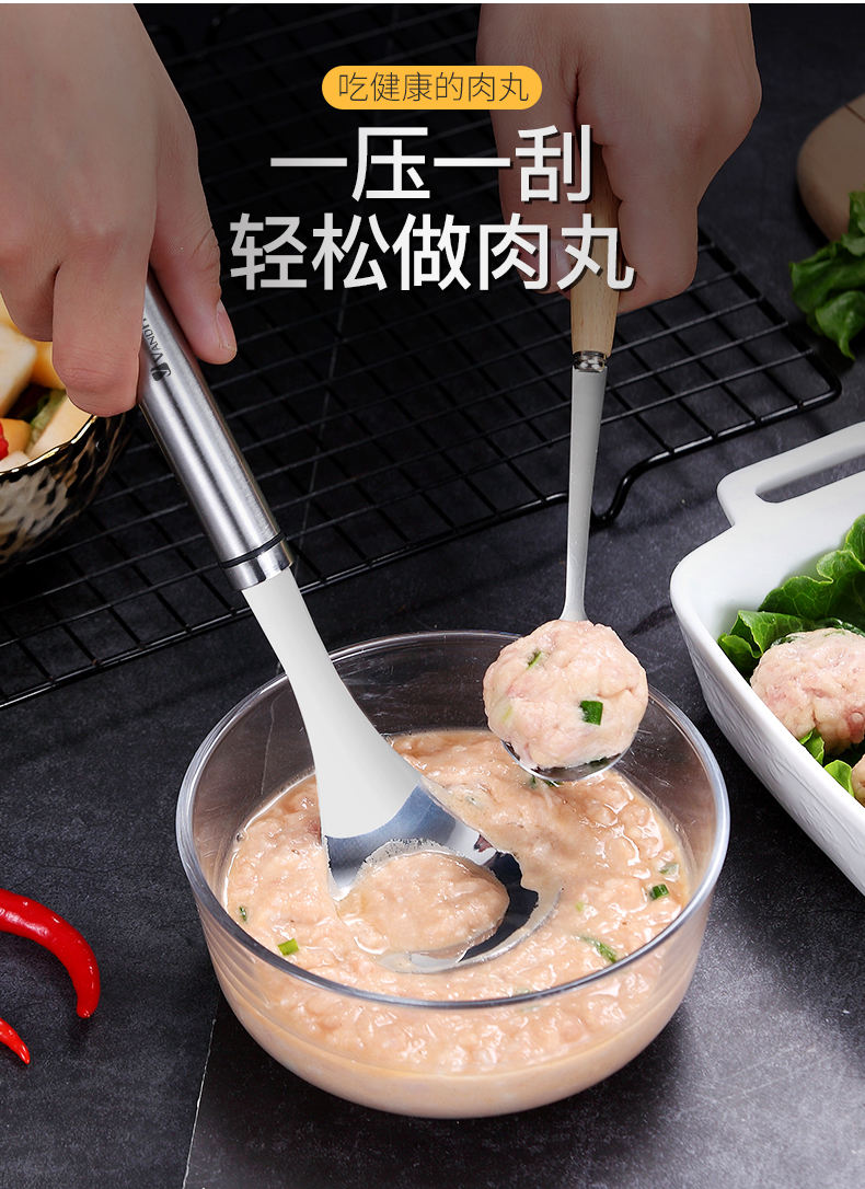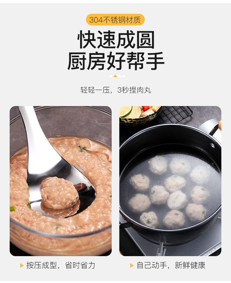 304不锈钢肉丸制作神器,轻轻一压三秒捏肉丸,快速成圆厨房好帮手。告别油腻,肉丸紧致有型