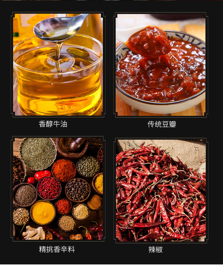海底捞大牌,实体店的同款味道!精选上等原材料,秉承传统制作工艺,麻辣鲜香,汤红油亮,醇香四溢,手工全型,无需炒制,直接煮食,简单方便。【赠运费险】