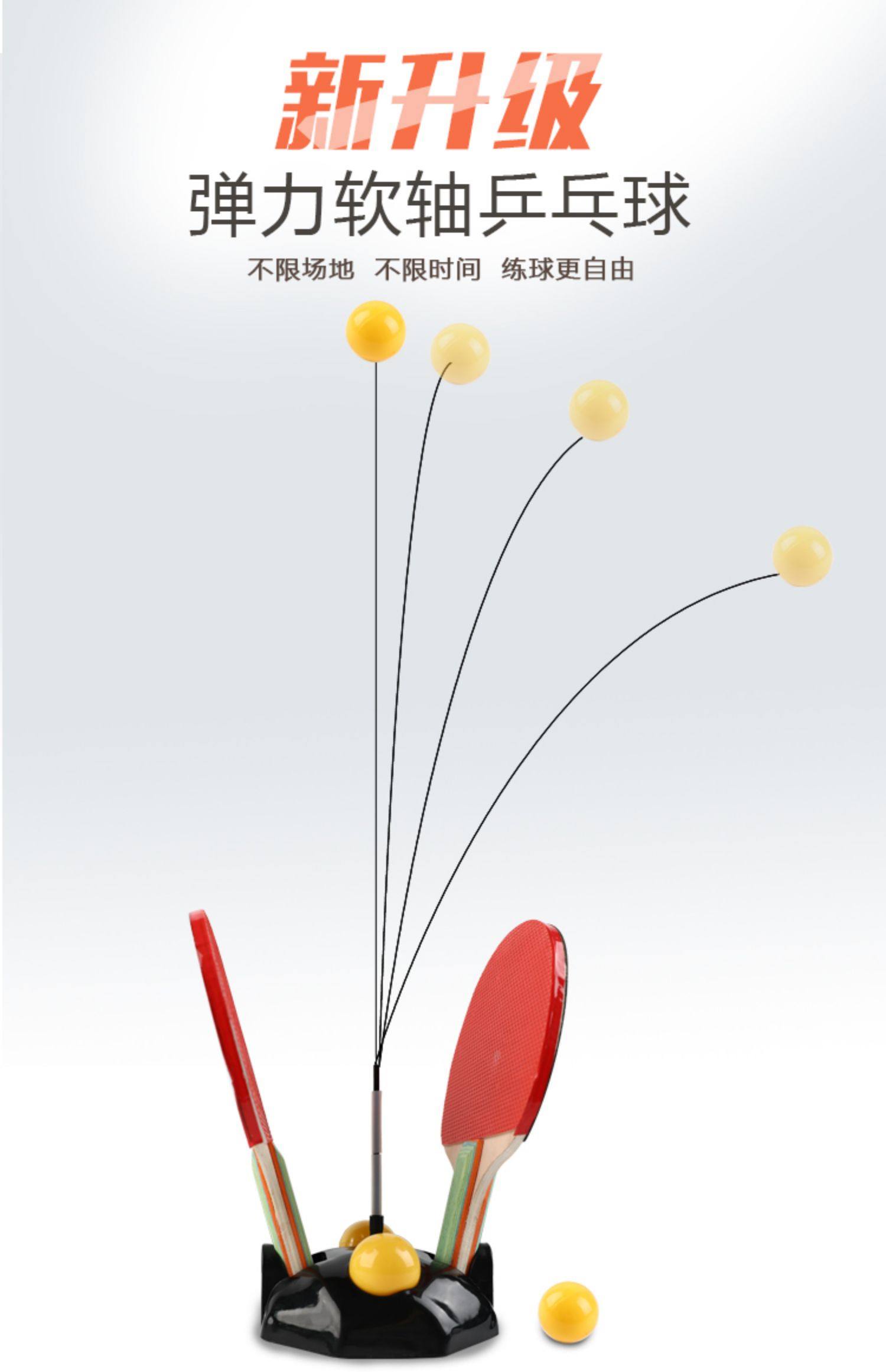 新升级弹力软轴乒乓球训练器,放下手机,预防近视,改善视力,集中注意力。底座升级加固加厚耐用,新款碳钢材质,更耐用,不易折断。炭纤维支撑杆,高弹力记忆软轴。
