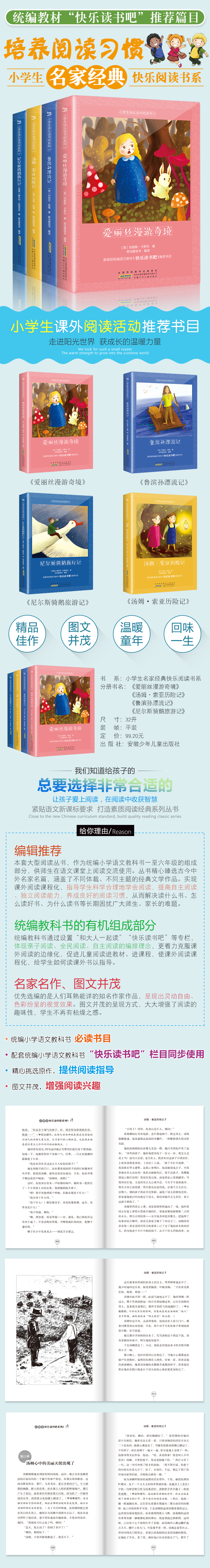 【小学语文教材指定阅读图书】紧贴新课标要求,名家经典快乐阅读书系,鲁滨逊漂流记+爱丽丝漫游奇境+汤姆亚索历险记+尼尔斯骑鹅旅行记,快乐读书吧六年级下册课外必读书,彩图注音版,精品佳作!