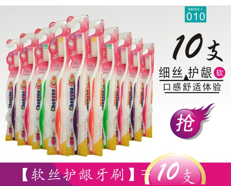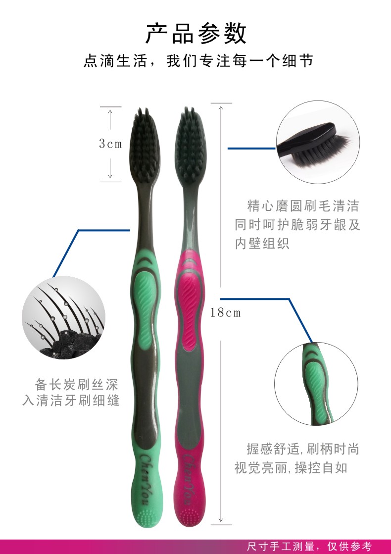 【超值10支装】竹炭吸附细菌,软毛按摩牙龈,口感舒适,细丝柔韧有弹性,深入清洁,防滑手柄,多彩颜色,10支特惠装,来客人不尴尬,家中常备!