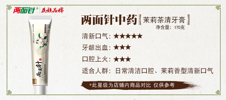 【送两支牙刷】两面针茉莉茶中药牙膏套装170g两支!!清新口气、美白去口臭、口气黄牙!!国货中药品牌,不含西药成分,中草药配方,护龈健齿,减少牙菌斑,清新口气,24小时呵护口腔健康。