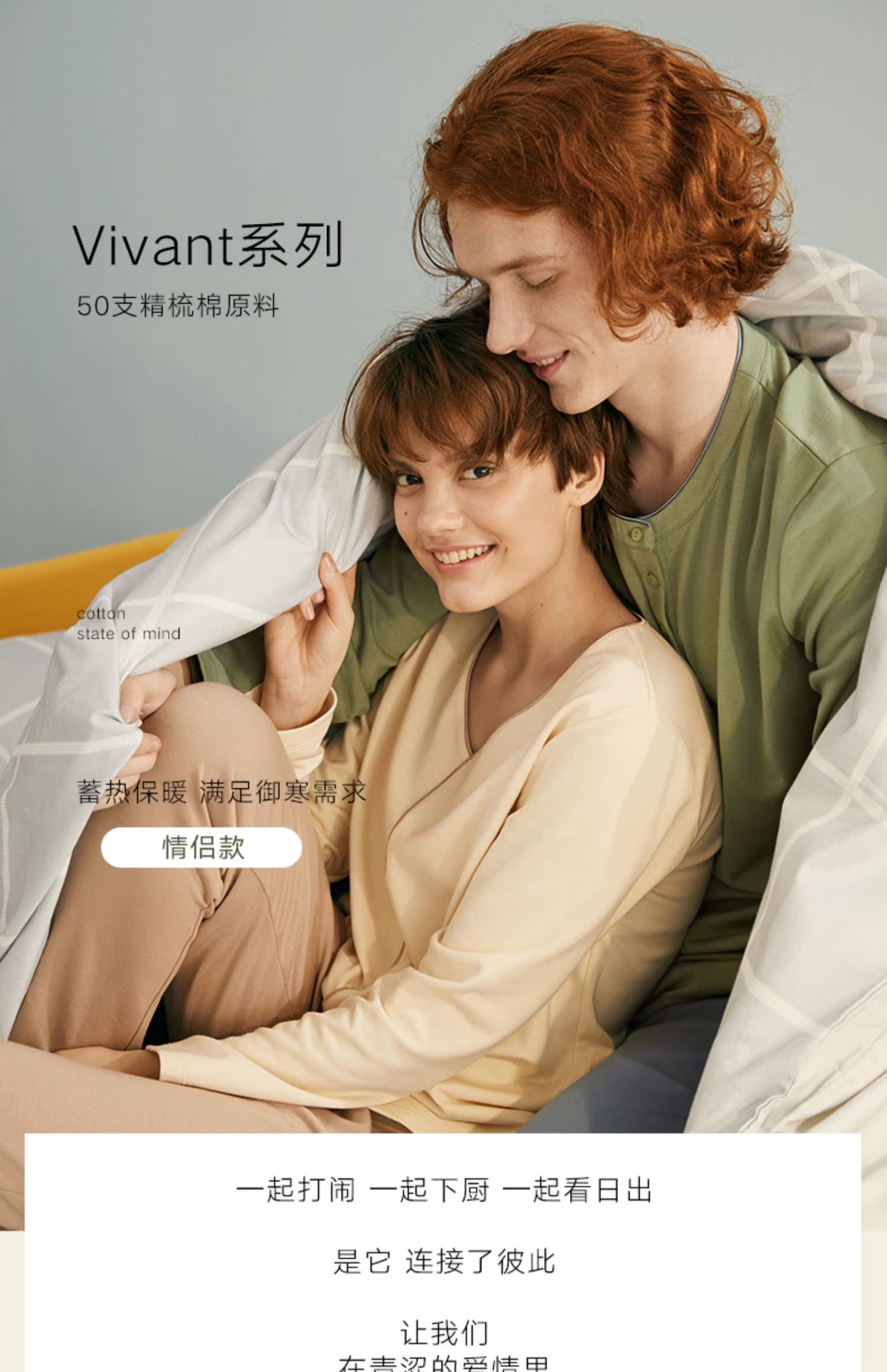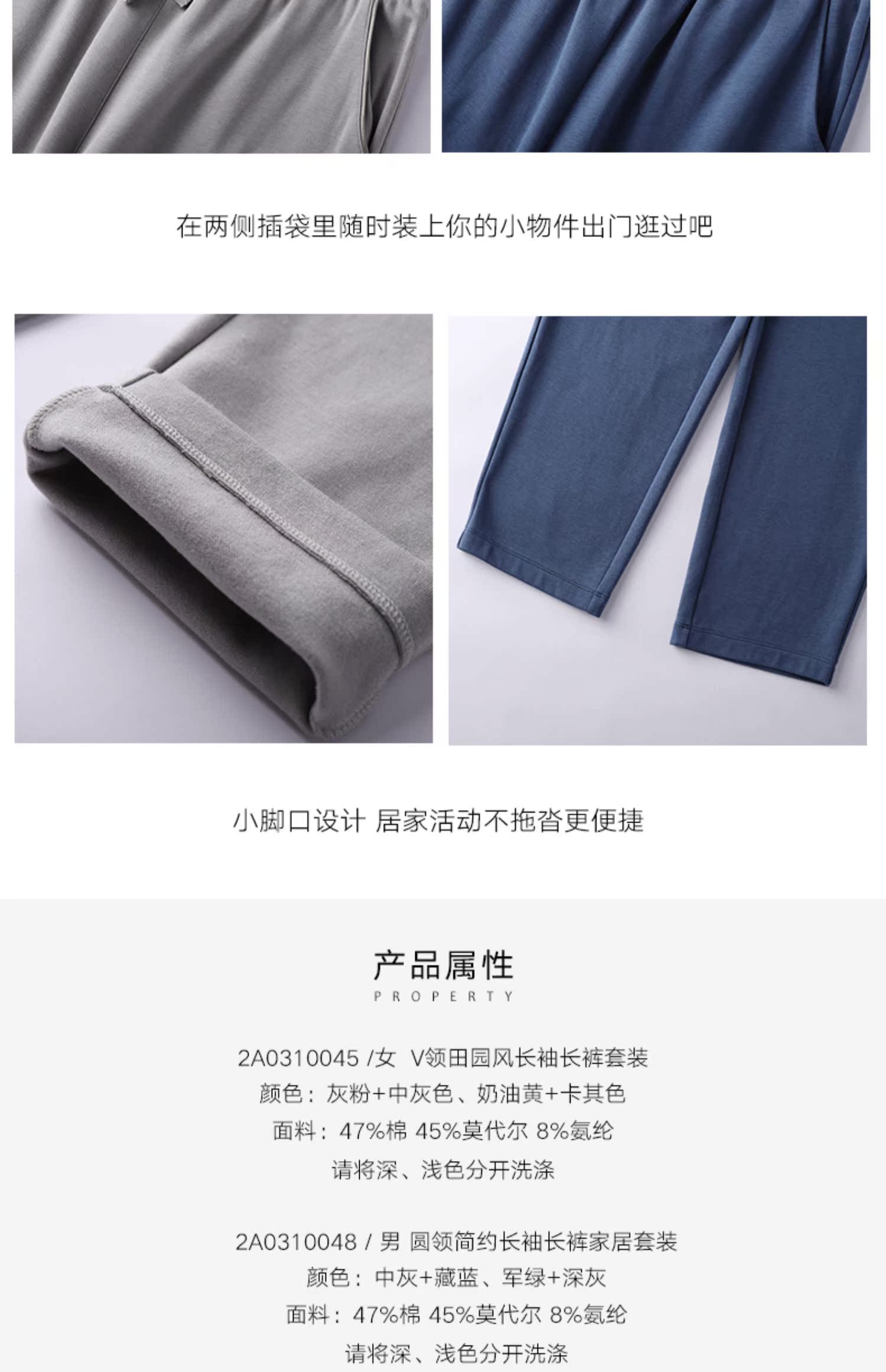 【满1件9折,满2件8.5折】曼妮芬v领情侣套装,50S精梳棉原料,蓄热保暖,满足御寒需求,舒柔品质面料,与肌肤亲触,做工精细,穿着宽松舒适,多色多款可选,赠运费险~