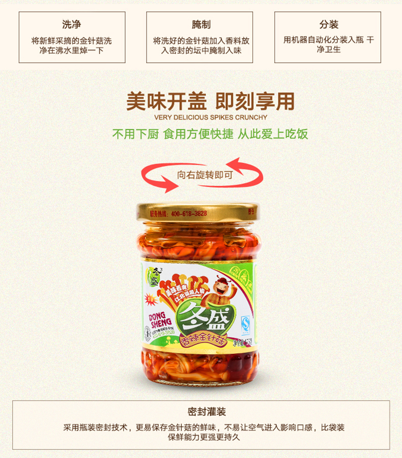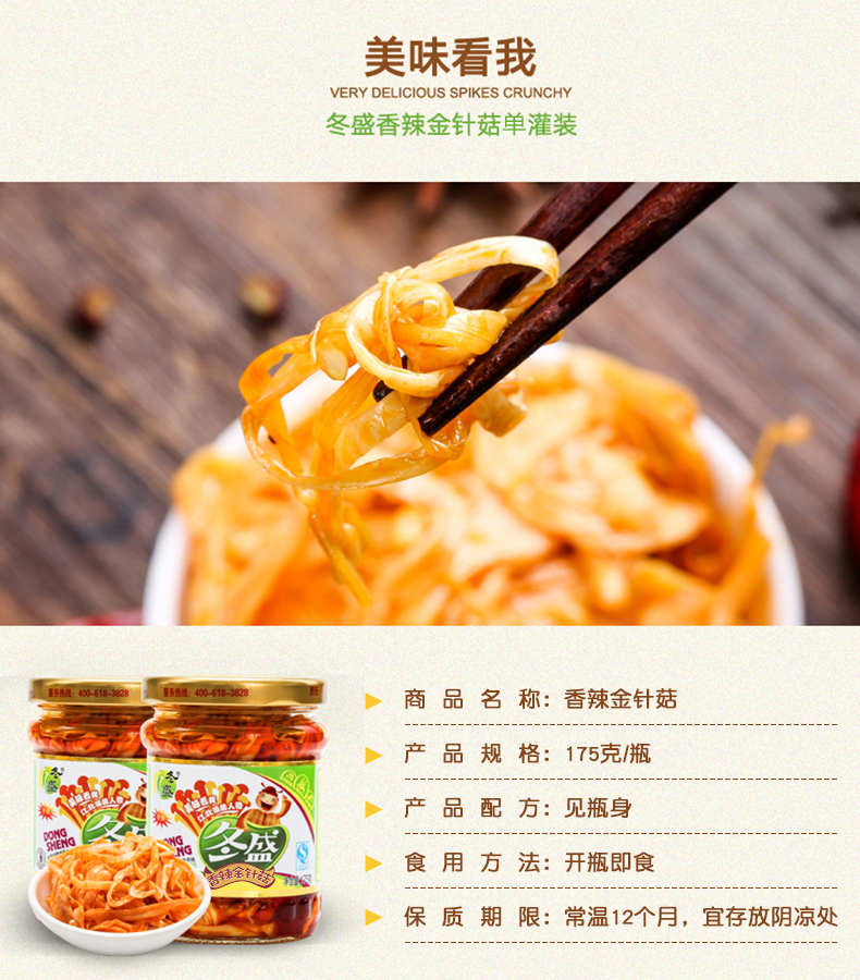 【175克*3瓶】入驻各大商超卖场,正宗工艺制作,拒绝食品添加剂,原生态绿色食材,高温杀菌,鲜嫩脆爽,酸辣可口,多种搭配,下饭利器,网红都在吃的金针菇下饭菜!!!