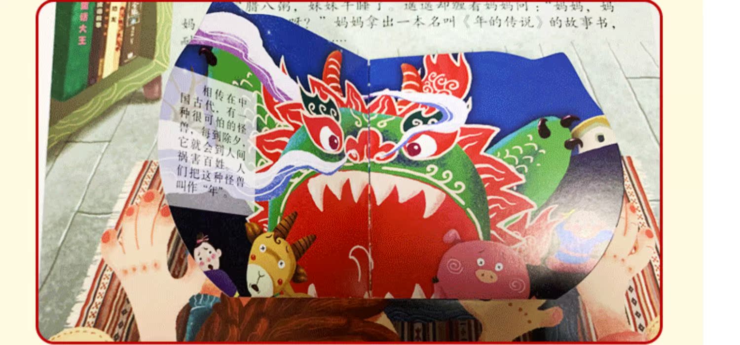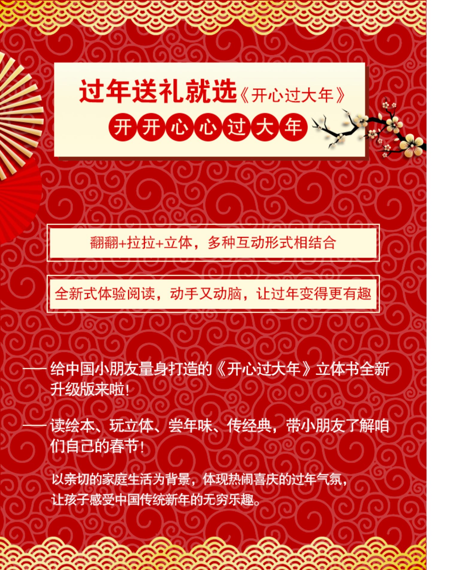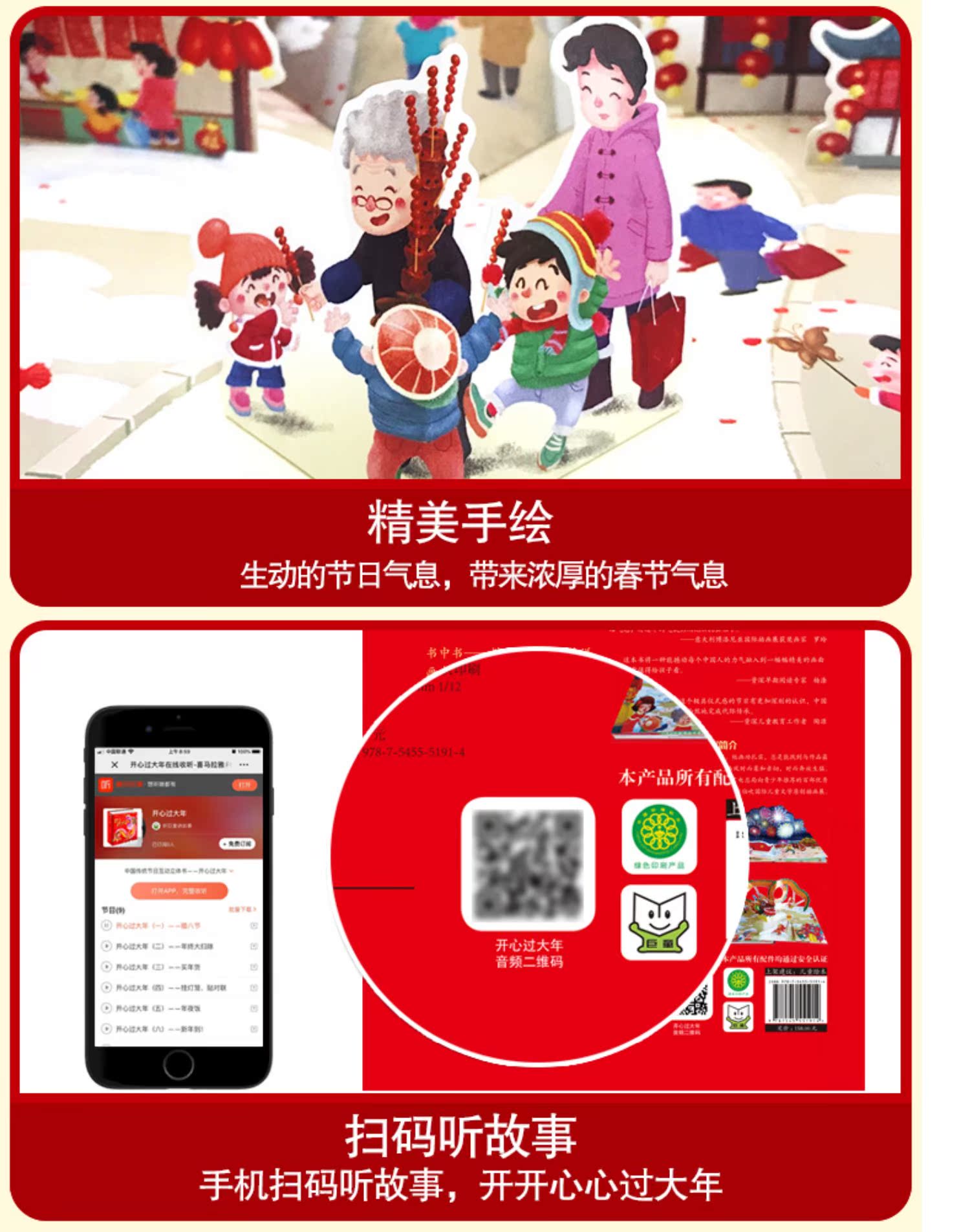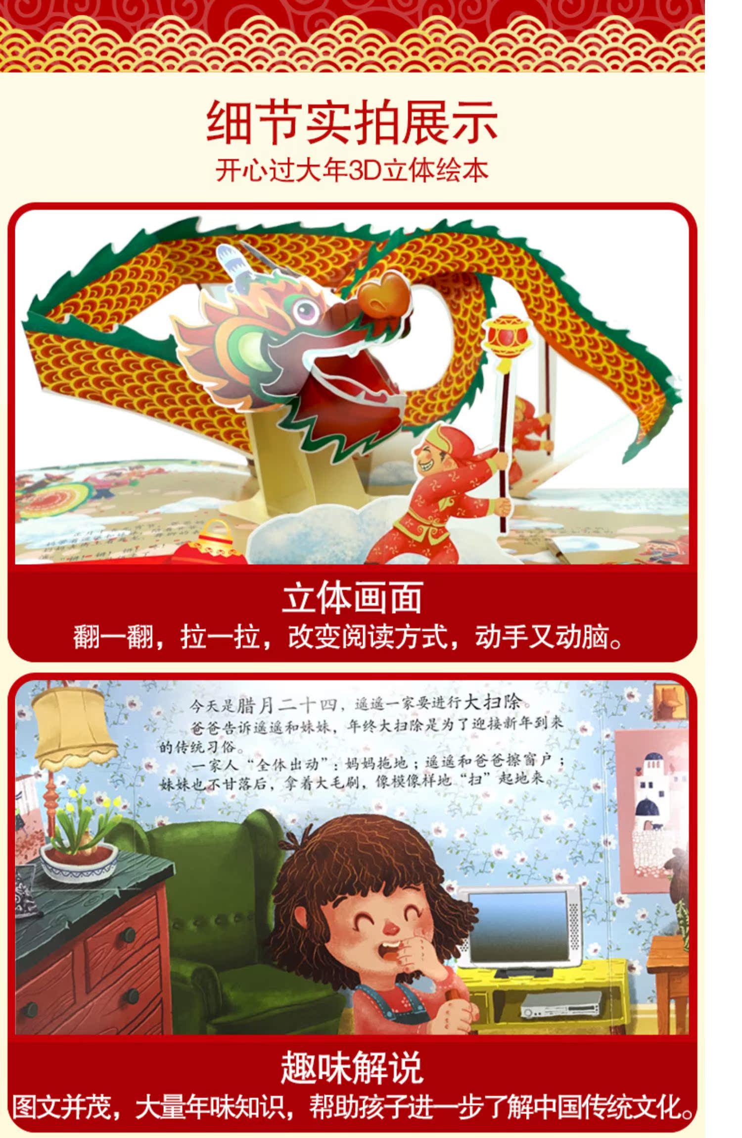 采用震撼3D立体效果,呈现完美逼真的过年气氛,让孩子身临其境走进故事,改变阅读方式,动手又动脑,趣味解说,图文并茂,精美手绘,带来浓厚的春节气息,给孩子的新年礼物。
