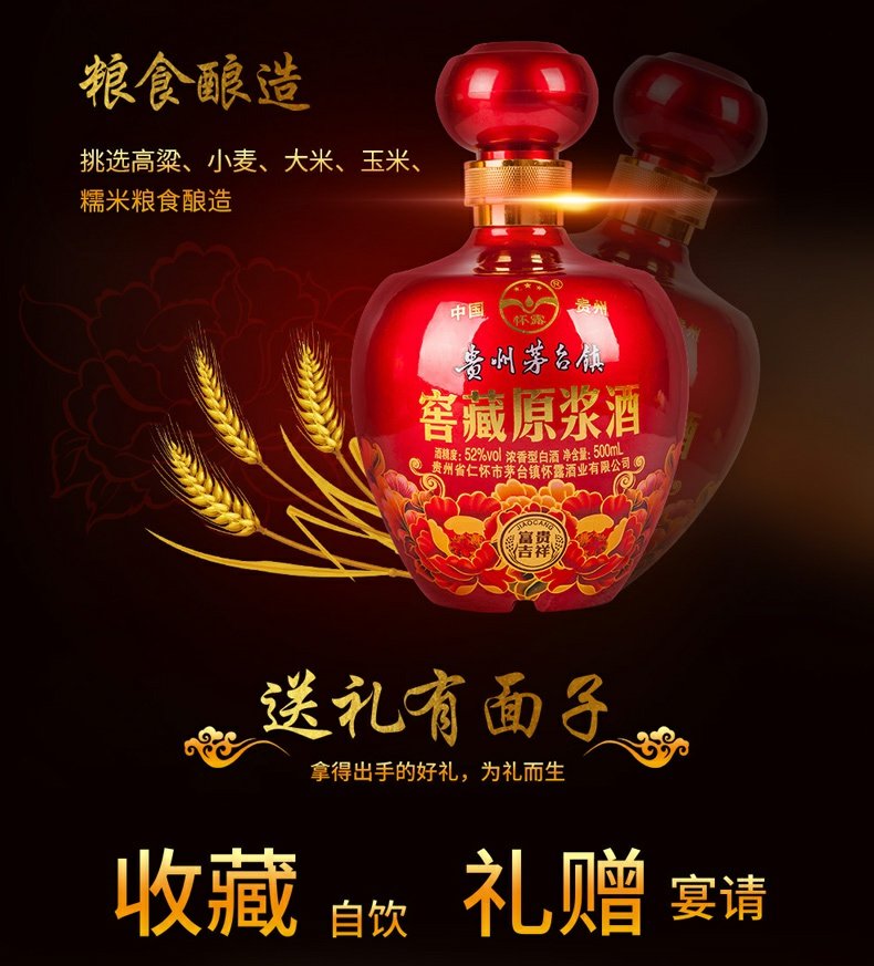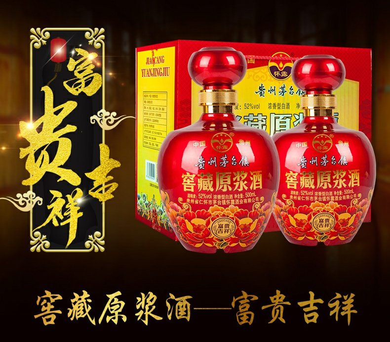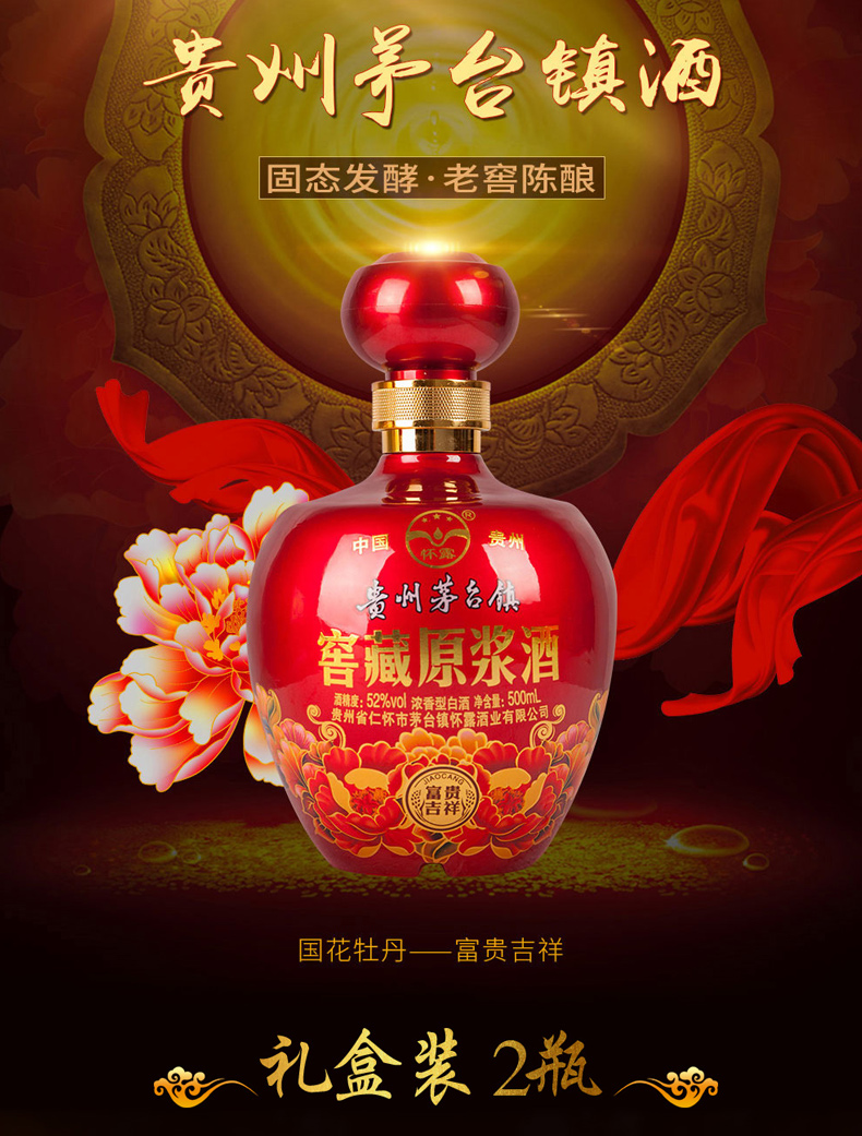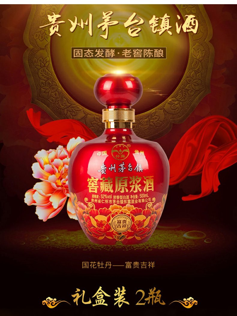 【富贵吉祥系列】茅台2瓶礼盒装,固态发酵,老窖陈酿,52度500ML浓香型白酒,收藏自饮,赠礼佳选【假一罚十】