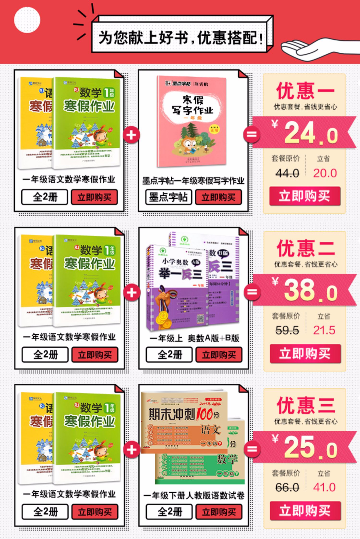 寒假作业【语文+数学】共2本,紧扣教材练点,关注教师讲点,同步练习册达标卷,强化考试考点,再苦不能苦孩子。