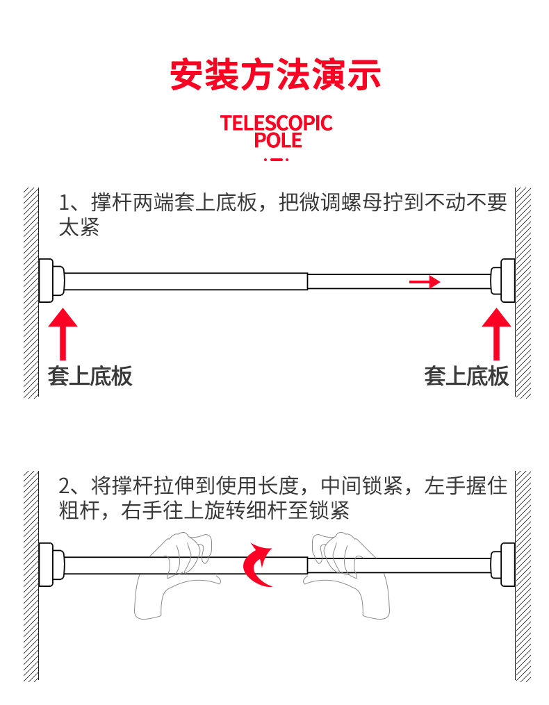 居家必备神器,升降伸缩杆,免打孔承重强,可调节,不锈钢耐磨,适合多种墙面安装,一杆多用,解决空间限制!【赠运费险】