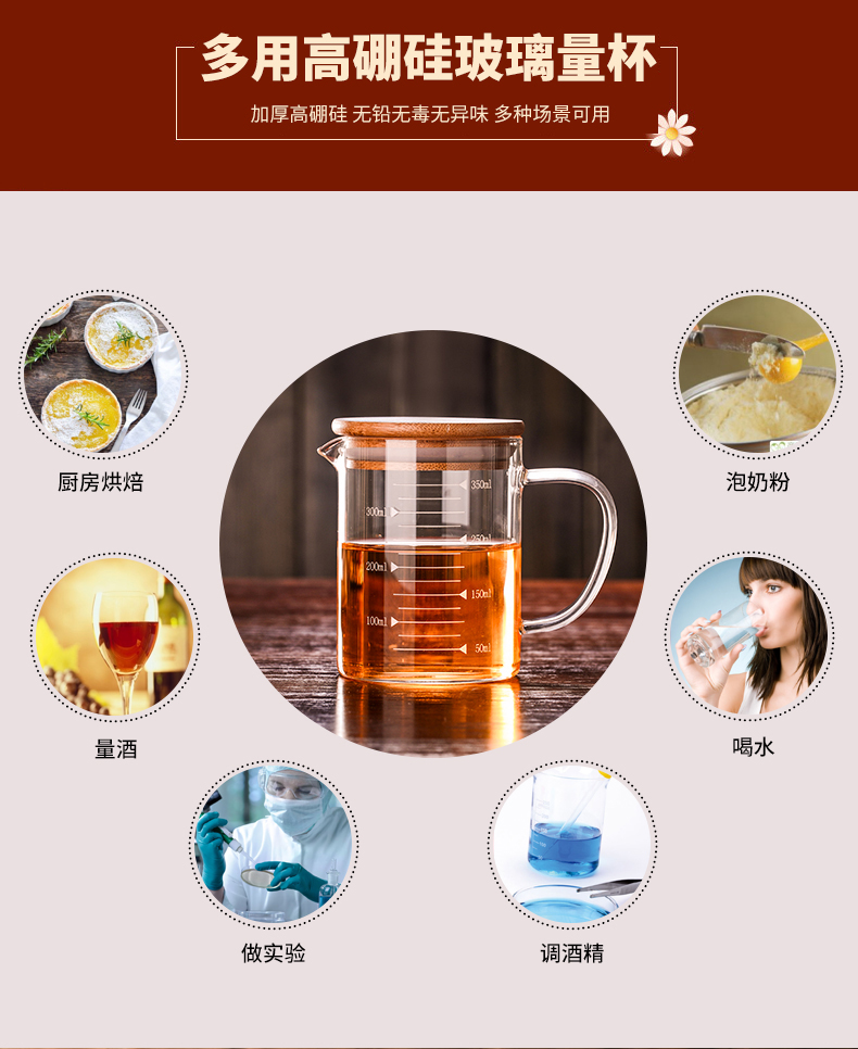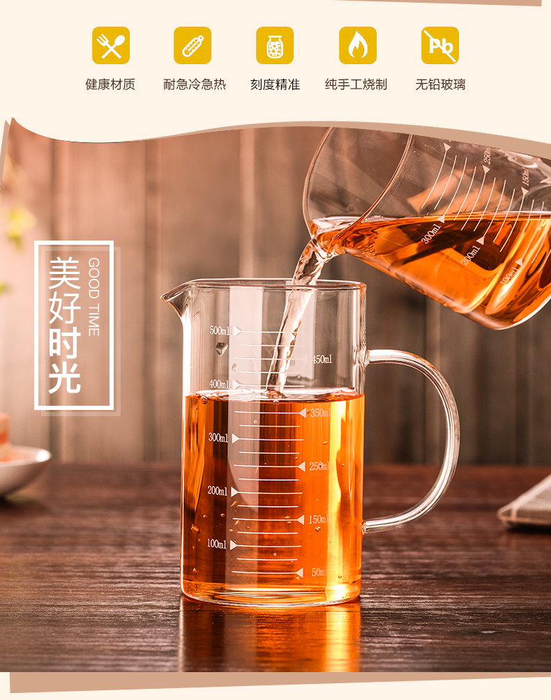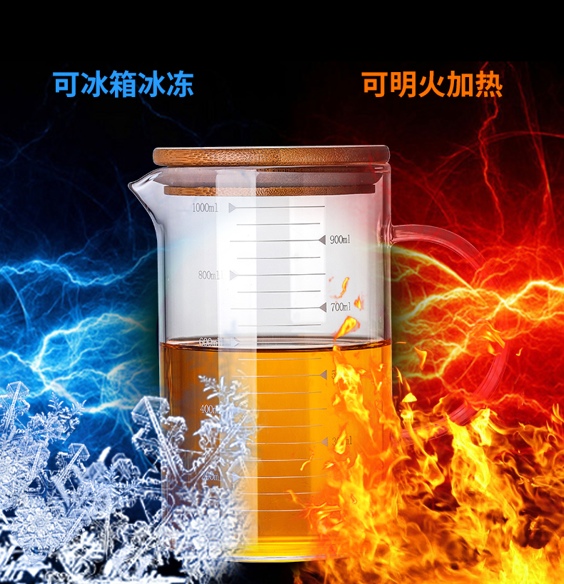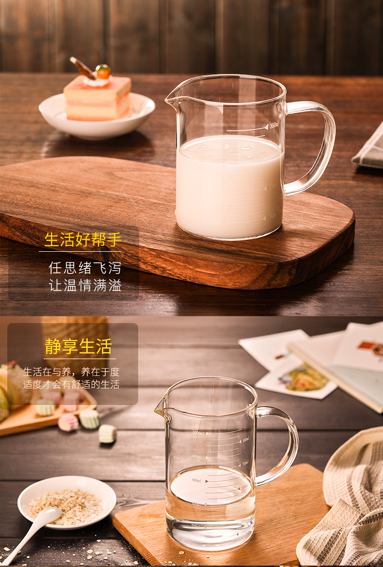 【4.9高评分】优选无铅高硼硅玻璃,健康材质,耐急冷急热,可直接加热可冰箱冷冻。刻度精准,纯手工制作,厚实不易碎。烘培,调酒,泡奶粉,做实验等用途广泛,居家生活好帮手!