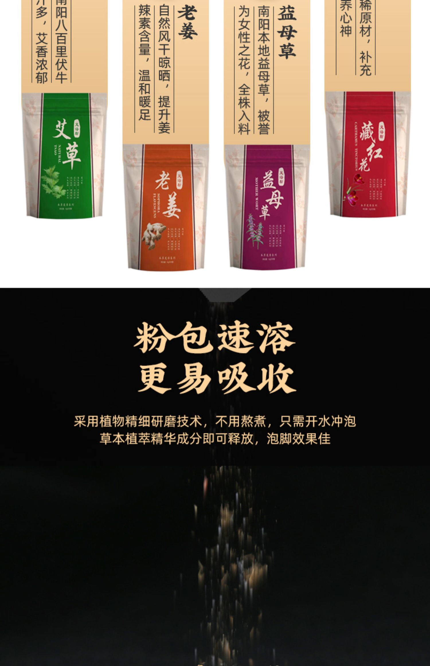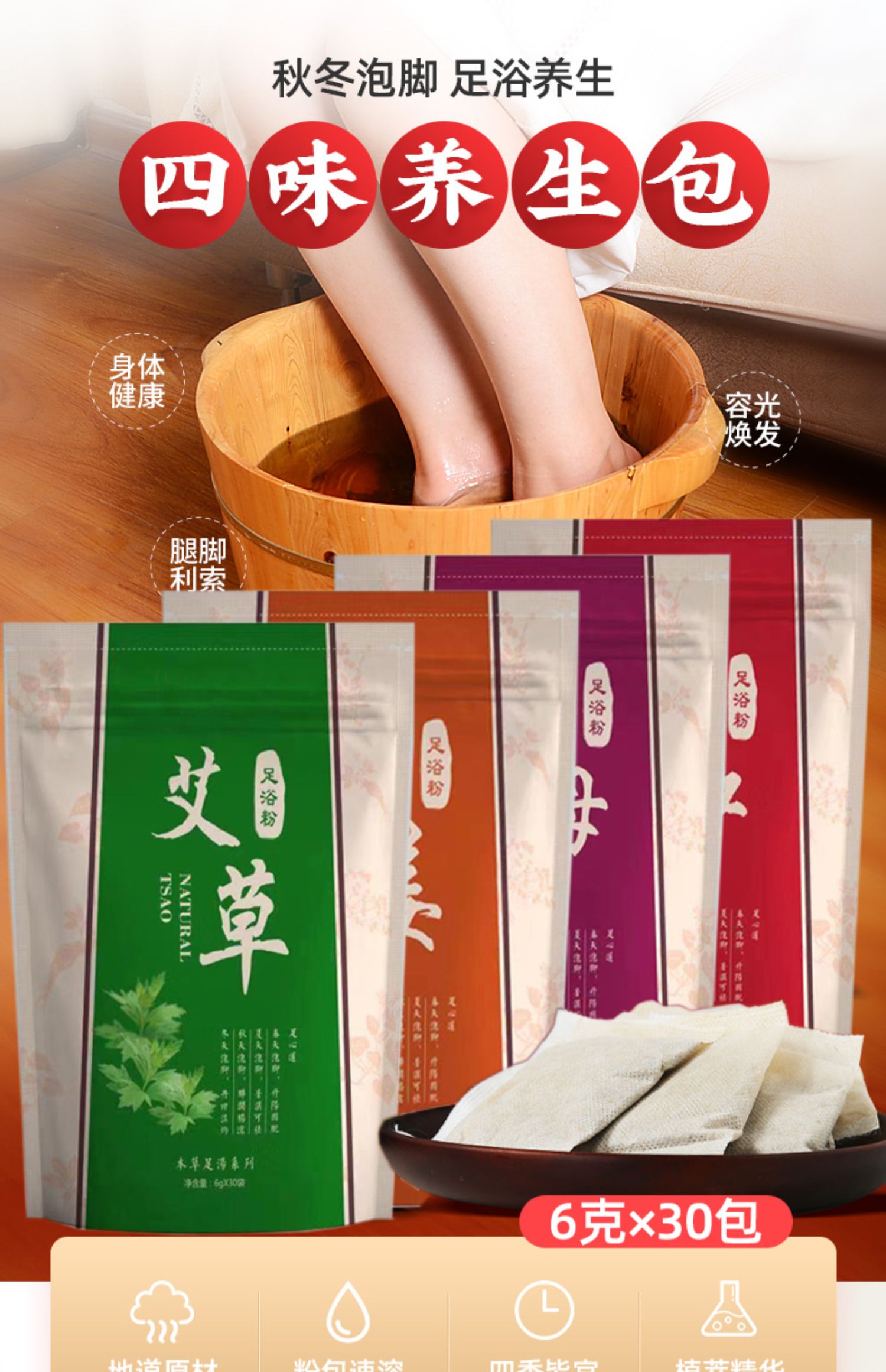 拍1=4袋(艾草、老姜、藏红花、百草各1袋)4种功效搭配【共120包】可用三个月~养生先养脚,每天一泡,远离医生,活血驱寒祛湿,改善睡眠,摆脱亚健康【赠运费险】