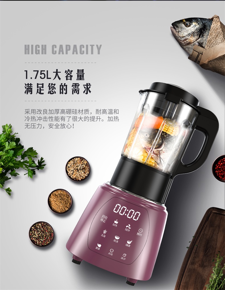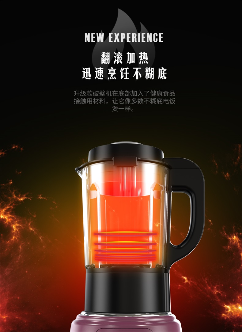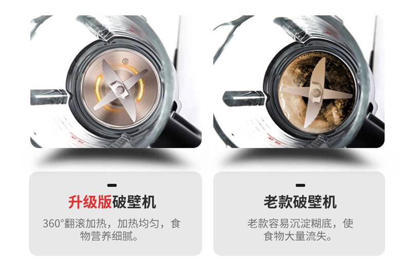 【小太阳电器旗舰店】八页精钢刀头,破壁无渣,加厚高硼硅材质翻滚加热,迅速烹饪不糊底,早餐轻松无烦恼!碎骨毫无压力,降噪静音,10大功能菜单,破壁营养更好吸收!